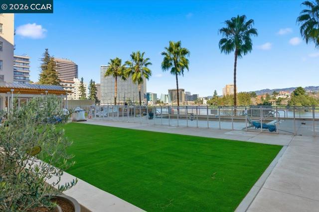 Welcome to The Essex on Lake Merritt, Oakland’s premier luxury high-rise. This 14th-floor, 2-bedroom, 2-bath condominium offers inspiring panoramic views of Lake Merritt, the downtown skyline, and the East Bay hills from the living room, kitchen, and primary bedroom. The 1,161 sq ft floorplan features an open living area, new carpets, new lighting, and fresh paint throughout. The primary suite enjoys sweeping lake views and an en-suite bath, while the second bedroom is ideal for guests or a home office. In-unit laundry adds convenience. The Essex provides 24-hour front desk security and doorman service, a resort-style pool and spa, a fully equipped gym, business center, conference room, and clubhouse. Two parking spaces in the gated garage are included. The building’s coveted Lakeside location is close to Whole Foods, Trader Joe’s, Lake Chalet, Grand Avenue and Lakeshore shops, the Farmers’ Market, museums, and countless restaurants and cafés. Commuting is effortless with BART, AC Transit, bike lanes, and nearby freeway access. Stroll the lakefront, enjoy the nationally protected bird sanctuary, and experience one of the most walkable and vibrant neighborhoods in Oakland. This is lakefront living at its finest. Views: Downtown