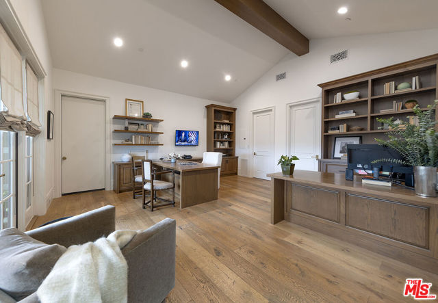 A rare offering in The Enclave at Century Woods. This effortlessly elegant villa marries modern convenience and scale with timeless style. Light and bright with hardwood floors throughout and a thoughtful floorplan with excellent flow and volume. Spacious, comfortable family room leads to an open kitchen featuring Wolf range and Sub Zero refrigerator with additional Sub Zero in service area. Upstairs, the primary suite is a sanctuary with two primary bathrooms and large walk-in closets. Three additional guest bedrooms, all with en-suite baths. Top level features a spacious office with its own bathroom and a private patio with fireplace and wide views. All levels are accessible by elevator. Ample outdoor spaces including charming entry courtyard, spacious back patio and turfed dog run. Three car garage and incredible storage space throughout. Guard gated Century Woods is ideally situated, walkable to shops and restaurants at Westfield Century City and only moments from Beverly Hills - an exceptional combination of security, convenience, and community.