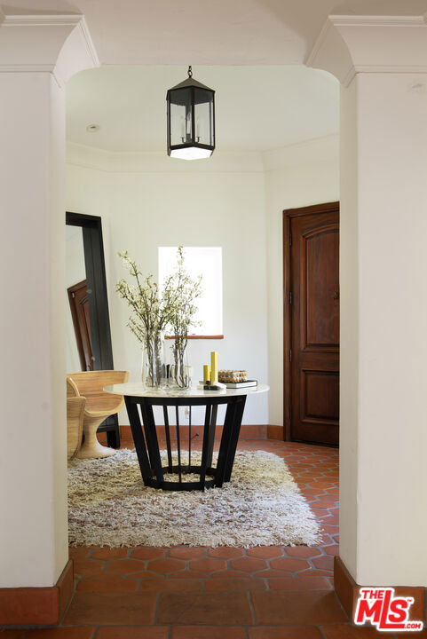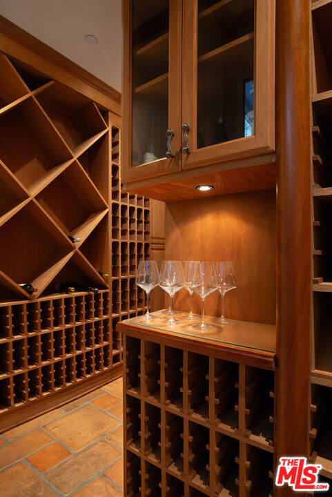 Located on coveted Cove Way in Beverly Hills, this single-story Italian villa offers privacy, elegance, and timeless charm. Behind gates and a spacious motor court, the home features a Saltillo tile foyer leading to a grand kitchen and great room with 15-foot ceilings, dual wet bars, and top-tier Wolf, Miele, and Sub-Zero appliances. Designed for entertaining, the residence includes a 1,200+ bottle wine cellar, a step-down living room with a dramatic fireplace, and seamless access to a private courtyard with a pool, fire pit, and ample seating. The primary suite offers dual vanities, a spa tub, and three walk-in cedar closets. A separate guest wing with two additional bedrooms and private patio access, plus a maid's quarters, completes this rare offering in one of Beverly Hills' most exclusive enclaves.