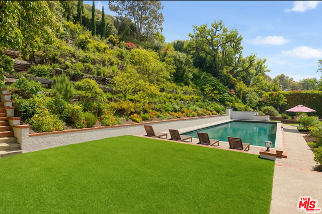 Seller open to creative financing. Beautifully maintained and move-in ready, this Lower Bel Air gated retreat blends luxury, privacy, and classic California charm. Featuring 5 bedrooms and 6 bathrooms across nearly 4,000 sq. ft., the home includes a spacious primary suite with a spa-like bath and generous closets. Secondary bedrooms are well-sized, each with en-suite bathrooms and ample storage.The chef's kitchen is ideal for both daily living and elevated entertaining. Outdoors, the terraced garden reminiscent of Positano is surrounded by lush landscaping and an impressive array of fruit and vegetable trees, including avocado, citrus, apples, cherries, blueberries, and more.This private oasis includes a swimming pool, spa, and multiple spaces for al fresco dining and relaxation. The upper pad offers the potential for an ADU with scenic views.Additional highlights include a new roof, a new tankless water heater, off-street parking, and a full security system. A rare opportunity to experience timeless elegance and serene living in one of Bel Air's most desirable locations.