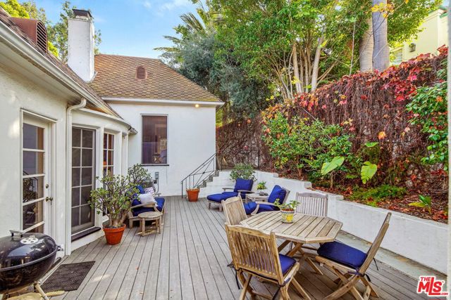 Gorgeous 4BR Traditional home perched on a beautiful tree-lined street in Little Holmby! Elegance flows throughout this sophisticated home with a beautiful living room with fireplace that leads to a large interior courtyard which wraps around into the cozy family room and gourmet kitchen to give it seamless indoor/outdoor entertainment living! Beautiful hardwood floors, wainscoting & built-ins are just part of the charm of this home! Large dining room, primary bedroom suite with access to the backyard and another bedroom suite, plus laundry area encompass the main level. Downstairs entails two bedrooms which share a bath and have a separate entrance. Large grassy yard and deck. 2 Car Garage.