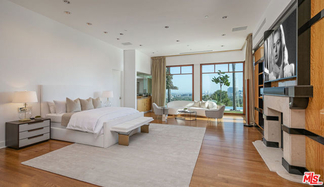 Museum Modern on an exceptional Beverly Hills Promontory. Panoramic views from Ocean to Downtown. No roof tops or obstructions. Exceptional scale with soaring ceilings. Walls of glass frame the jetliner views. Over 7,500sqft. Primary suite is on par with world-class hotel with double baths and vast closets. 3 additional bedrooms. Major infinity edge pool wraps a vast terrace for entertaining. One of a kind, in a most prime location. Shown to prequalified buyers.