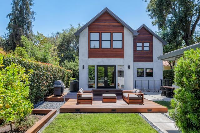 In the heart of Palo Alto's Community Center neighborhood, this modern residence blends stylish design, abundant natural light, and seamless indoor/outdoor living. The main level features an open-concept floor plan and Ipe decks at both the front & rear that extend the dining & living rooms outdoors. A chef's kitchen showcases Caesarstone countertops, custom cabinetry, and premium appliances. Upstairs, three bedrooms include a generous primary suite with spa-inspired bath, soaking tub, glass-enclosed shower, and walk-in closet.The light-filled lower level, with private exterior access, features a recreation room & wet bar, two additional bedrooms, a full bath, & laundry room. Oak flooring, smart home technology, and a detached, insulated 2-car garage underscore the home's quality, while the handsome stucco exterior and 24-gauge metal roof ensure timeless curb appeal. The fully fenced yard is framed by mature hedges and access to the garage is via a quiet alley. This prime location offers easy access to Rinconada Park & Pool, Lucie Stern Community Center, Junior Museum & Zoo, Childrens Library, & Rinconada Library. Just minutes from top-rated schools, downtown Palo Alto and Stanford University, a rare opportunity to own a home in one of the city's most sought-after neighborhoods.