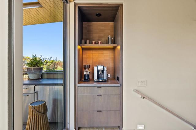 Panoramic ocean views and world-class design meet in this front-row West Cliff Drive masterpiece by Marmol Radziner, the acclaimed architectural firm celebrated in Architectural Digest's AD100. Designed with a reverse floor plan to capture sweeping horizons, the home features floor-to-ceiling windows and multi-slide glass doors. Imagine watching whales glide by, sipping cocktails on your deck while soaking in breathtaking sunsets, or taking just steps to the sandy shores of Mitchells Cove Beach. Embrace a healthy lifestyle with nearby biking trails, coastal strolls, and endless opportunities for outdoor living and recreation. This home is a very rare find, featuring an open-concept living space, custom millwork, hardwood floors, a large island, a chef's kitchen, and top-quality materials. Four ensuite bedrooms include a spacious and comfortable primary suite. Outside, your backyard oasis offers al fresco dining on an expansive deck with an outdoor kitchen. Host gatherings at the backyard bar with built-in BBQ and keg tap, unwind by the cozy gas fireplace lounge and outdoor TV, refresh in the outdoor shower, or rejuvenate in the private sauna. This exceptional property blends luxury and comfort, modern architecture, and the vibrant coastal lifestyle of Santa Cruz's Lower Westside.