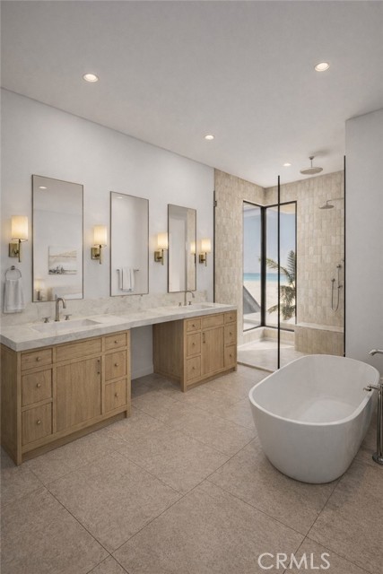 Introducing a rare opportunity to own a brand-new oceanfront residence on the highly coveted Balboa Peninsula. Thoughtfully designed and expertly curated, this 4-bedroom, 6.5-bathroom home spans approximately 2,851 square feet and blends timeless coastal architecture with refined, modern finishes. From the moment you enter, the home showcases an elevated yet relaxed aesthetic, featuring custom white oak cabinetry, soft plaster finishes, and a sophisticated mix of natural stone, handcrafted tile, and warm textural elements. The chef’s kitchen is both functional and striking, complete with premium appliances, custom millwork, and a seamless connection to the main living spaces—perfectly positioned to capture sweeping ocean views. Each bedroom is ensuite, offering privacy and comfort, while the primary suite is a true retreat with a spa-inspired bath, layered textures, and serene coastal tones. Throughout the home, curated lighting, designer fixtures, and bespoke details create a cohesive and luxurious living experience. One of the home’s most exceptional features is the expansive rooftop deck, offering panoramic ocean and bay views—an ideal setting for entertaining, relaxing, and enjoying Newport’s iconic sunsets. Located directly on the sand, 1123 E. Balboa delivers the ultimate coastal lifestyle with immediate access to the beach, boardwalk, and all that Newport Beach has to offer.