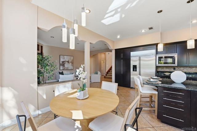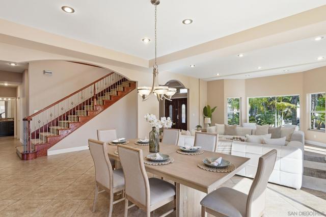 Experience tropical luxury in this stunning 5-bedroom, 4.5-bathroom Westwood home, masterfully rebuilt in 2008. Vaulted ceilings soar over the open-concept kitchen and living areas, creating a bright, airy atmosphere complemented by high-end appliances and a cozy breakfast nook. The versatile floor plan includes a convenient main-level bedroom with a full bath, while the upper level features a grand primary suite and three additional bedrooms. This home is a masterpiece of space and sophisticated design. Nestled in the desirable Westwood community of Rancho Bernardo, this property is a private sanctuary surrounded by mature palms and lush landscaping. The expansive backyard is an entertainer's dream, featuring a pillared pergola, extensive hardscaping, and a tranquil multi-tiered pond. Residents enjoy premier access to the Westwood Club’s amenities and the top-rated Poway Unified School District. With close proximity to the Bernardo Winery, local golf courses, and the San Diego Zoo Safari Park, this home offers the perfect blend of serenity and convenience. Discover your own piece of paradise with ample room for relaxation and grand-scale hosting.