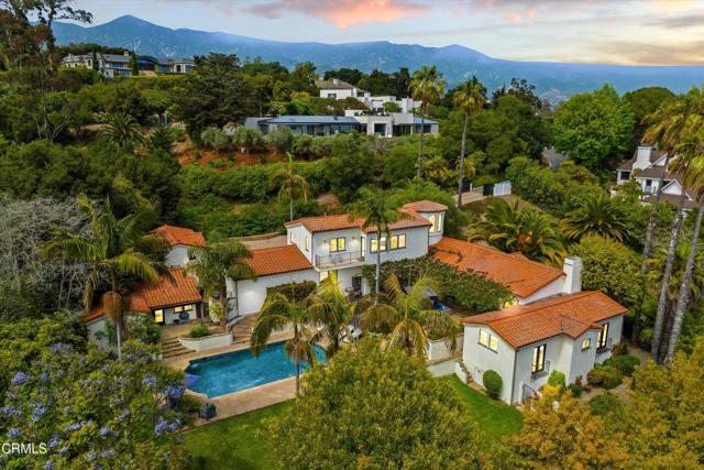 Gated Spanish Colonial Revival estate in Montecito's prestigious Pepper Hill neighborhood and Cold Spring School District. Set on .85 lush acres, the 4BD/3.5BA main residence offers nearly 3,850 sq ft of elegant, light-filled living with vaulted ceilings, a formal dining room, spacious kitchen with breakfast area, and a cozy family room. The living room opens through bi-folding glass doors to a stunning pool, spa, and multiple patios--ideal for indoor-outdoor living. A studio guest casita with full bath and a detached office with bath provide added flexibility. Moments from the Montecito Club, Rosewood Miramar, and both Upper and Lower Villages, this timeless retreat captures the essence of relaxed, refined Montecito coastal living.