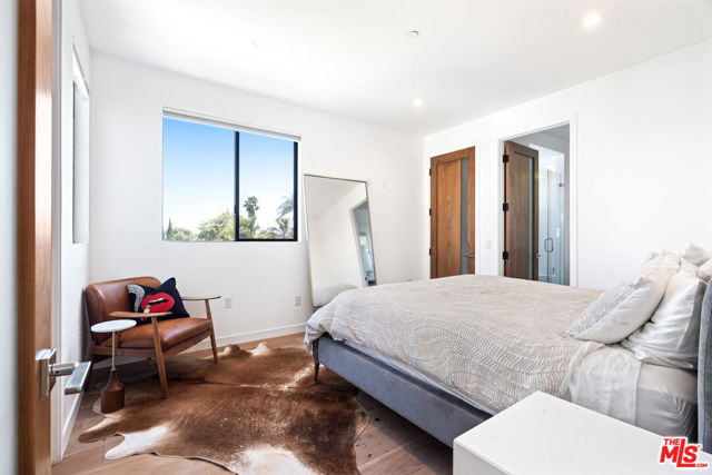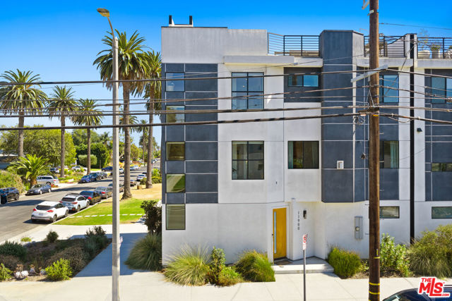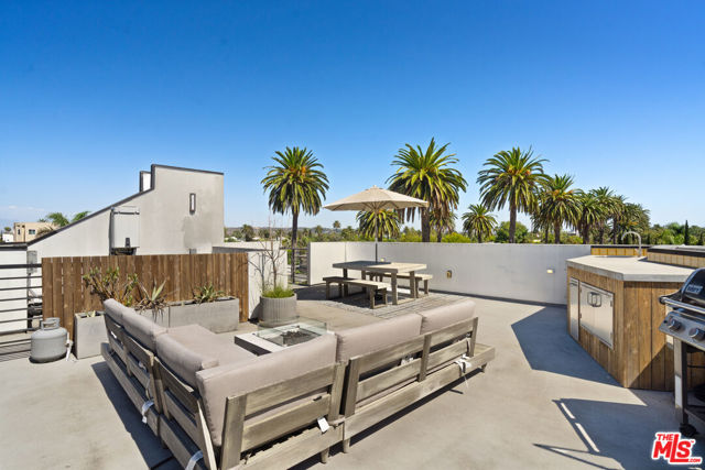 Experience elevated modern living in the heart of Mar Vista, ideally positioned on a prime corner lot. This architectural small-lot home offers 3 bedrooms and 3.5 bathrooms with hardwood floors throughout. The thoughtful corner floor plan invites an abundance of natural light into every space, with walls of windows showcasing views from each room and beautifully illuminating hallways and stairways. The open living room with fireplace flows seamlessly into a gourmet kitchen featuring quartz countertops, Jenn-Air appliances, custom cabinetry with chrome pulls, a breakfast bar, and an adjacent dining area with a private balcony. The luxurious primary suite includes a spa-like bath with dual quartz vanities and backlit mirrors. Thoughtful upgrades include a split HVAC system with separate units on each floor and Danze plumbing fixtures. A spacious rooftop deck creates a true outdoor living room, BBQ-ready and perfect for soaking in sweeping city and mountain views, breathtaking sunsets, and firework displays on the Fourth of July. An attached 2-car garage completes this exceptional home. Perfectly located just moments from the Mar Vista Farmers Market, Restaurant Row, Abbot Kinney, the Marina, and Venice Beach, this residence captures the very best of Westside living set within the coveted Marcasel Oval District, often referred to as the Beverly Hills of Del Rey.