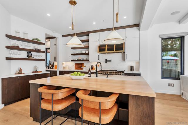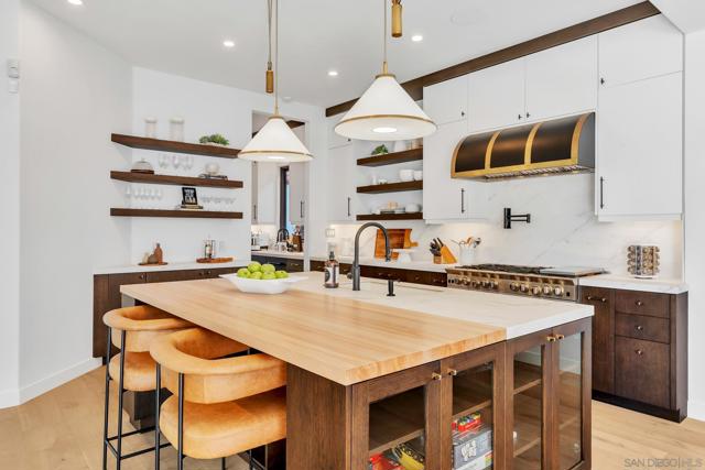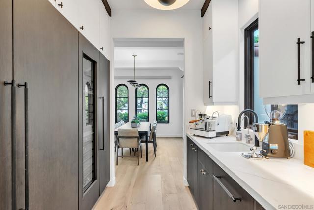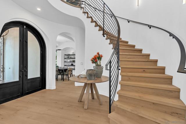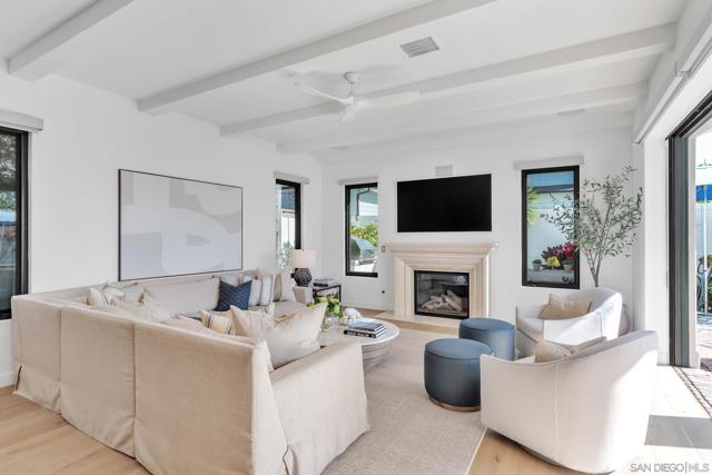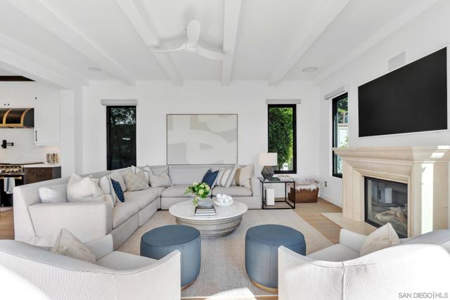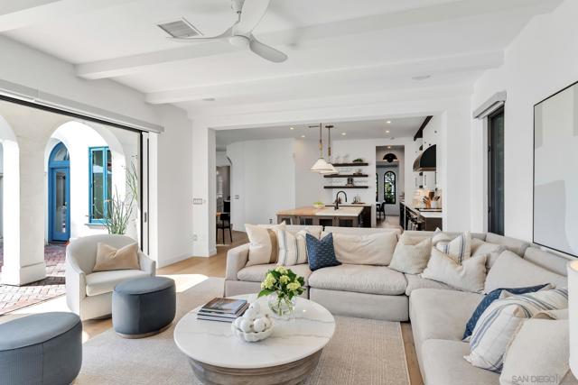 Set on one of the most desirable streets in Coronado’s Country Club Estates, just around the corner from the beach, 120 Carob Way is a striking Spanish-inspired coastal estate blending timeless architecture with refined modern luxury. Spanning approximately 4,420 square feet, this home offers six bedrooms, five full baths, and two half baths, with generous living spaces, sophisticated architectural details, and a thoughtfully designed layout ideal for entertaining and relaxed coastal living. Exceptional craftsmanship is showcased throughout, including hand-forged ironwork, imported woods, natural stone finishes, and custom cabinetry. A dramatic entryway showcases soaring ceilings and inviting living spaces, while the chef’s kitchen, anchored by a large center island, flows seamlessly into the great room and dining areas. Expansive pocketing glass doors create seamless indoor–outdoor living, opening to a resort-style backyard with lush landscaping, a saltwater pool, waterfall spa, and outdoor grilling area. Of the six bedrooms, one is a private guest suite with its own entrance, separate from the main living areas. Upstairs, the primary retreat offers a fireplace, sitting area, triple walk-in closets, and a spa-inspired bath. A spectacular rooftop terrace with fireplace captures sweeping panoramic sunset, ocean, and downtown San Diego skyline views. Extensively upgraded and meticulously maintained, this home presents in pristine condition—a truly exceptional offering in Coronado, just around the corner from the beach. See Documents for a full list of improvements including brand new HVAC System just installed.