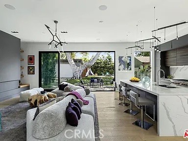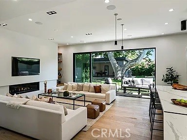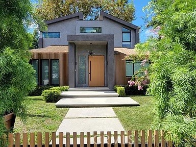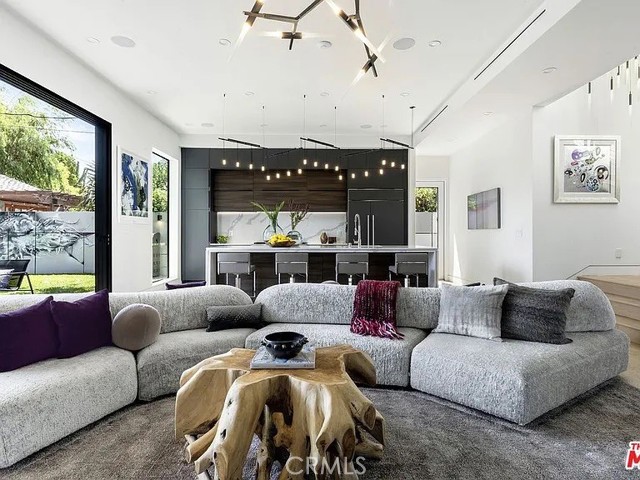 Modern Architectural | Fully Furnished | Available Jan 1 | Internet included. Tenant pays all other utilities. Stunning fully furnished architectural modern in prime Studio City, available January 1 for a 12-month lease. This designer 4BD/4BA home features soaring ceilings, a dramatic floating staircase, and seamless indoor/outdoor living with oversized sliding glass walls opening to a private landscaped yard. The chef’s kitchen includes Sub-Zero refrigeration, Wolf range, a waterfall island, custom walnut cabinetry, and sleek contemporary lighting. The main level also offers an elegant living room with linear fireplace and a dedicated media lounge with built-in bar. The luxurious primary suite features a private balcony, custom lighting, textured wall treatment, and spa-like bath with soaking tub + oversized stone shower. Additional bedrooms are spacious and beautifully furnished. Outside, enjoy a large grassy yard, fire pit lounge, outdoor dining, BBQ area, and privacy landscaping. Gated front entry, driveway parking, a two car garage, in-unit laundry, and high-end designer furniture throughout. A true turnkey luxury lease close to Ventura Blvd dining, shops, Erewhon, and top-rated schools.