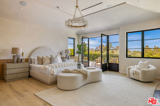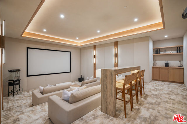 1220 Corsica Drive is a striking new custom estate nestled in the coveted Lower Riviera. Designed by renowned architect Ken Ungar with interiors by Matthew Brinkley of Studio Brinkley, this 10,293-square-foot contemporary residence spans three levels, balancing bold scale with refined comfort. A dramatic double-height foyer, opens to an expansive living and dining areas adorned with custom oak paneling, fluted textures, and a curated mix of luxurious finishes. The chef's kitchen is a centerpiece of the home, featuring sculptural marble surfaces, bespoke cabinetry, a walk-in pantry, and a separate staff kitchen perfect for seamless entertaining. The main floor also includes a sophisticated home office, wine bar, oversized laundry with dual washers and dryers, and a guest suite with private access to the rear grounds. Upstairs, the primary suite offers a serene retreat with a private terrace, spa-like bath with soaking tub and oversized marble shower, dual walk-in closets, and a peaceful sitting area. Additional bedrooms are generously sized, each with an en-suite bath and abundant natural light. The lower level is built for leisure and entertainment: a state-of-the-art theater, full bar and lounge, wine cellar with tasting room, expansive fitness center, and a wellness suite with sauna, steam shower, and a private bedroom. An elevator connects all three levels with ease. The resort-style backyard features a pool and spa, a cascading water feature, multiple lounge areas, a fire pit, an outdoor kitchen, and a pergola for al fresco dining, all framed by mature olive trees and privacy hedges. Thoughtful lighting creates a warm and inviting ambiance after dark. This home is equipped with integrated smart home technology, solar power, and top-tier systems, this home embodies modern luxury, architectural excellence, and resort-caliber amenities in one of the Westside's most prestigious neighborhoods.