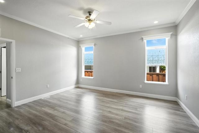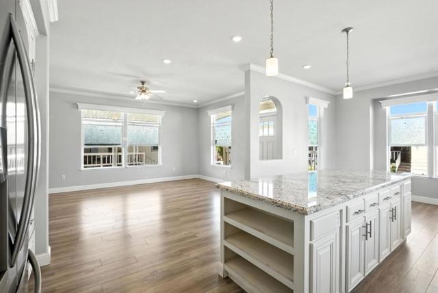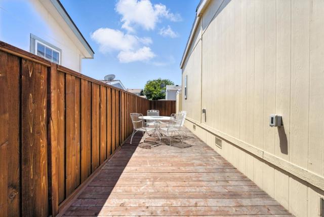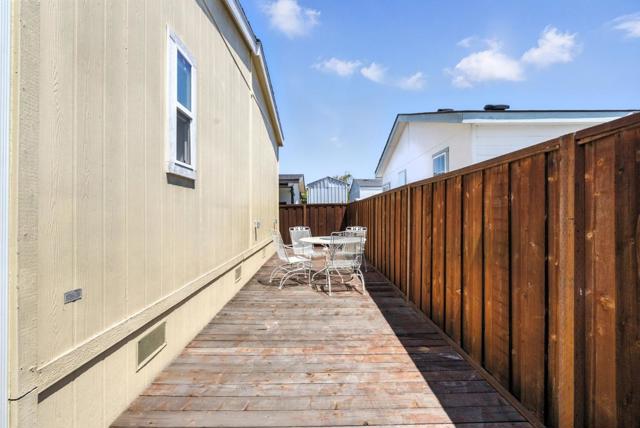 Welcome to a luxurious lifestyle in the prestigious Plaza del Rey community! Built in 2017, this meticulously maintained 3-bedroom, 2-bathroom home blends modern design w/ everyday functionality. Step inside to high ceilings, recessed lighting & abundant natural light that fills the open-concept living & dining area. The stylish kitchen is a chefs dream, featuring sleek granite countertops, stainless steel appliances, spacious center island & ample built-in storage. The thoughtfully designed layout includes a dedicated laundry room w/ washer/dryer, extra storage space, & direct access to tandem covered parking & private storage shed. Down the hall, 2 generously sized bedrooms share a full bathroom w/ a granite-topped vanity & shower-over-tub. The primary suite is complete w/ a walk-in closet & luxurious ensuite bathroom w/ dual-sink vanity & tiled stall shower w/ glass doors. Enjoy your own private, fenced backyard w/ deck, perfect for lounging or grilling outdoors. Located within a secure, beautifully maintained park, residents of Plaza del Rey enjoy access to resort-style amenities including a clubhouse, swimming pools, bocce court, barbecue areas & attentive on-site staff. Conveniently close to Costco, Levis Stadium, Lakewood Park & major highways including US-101.