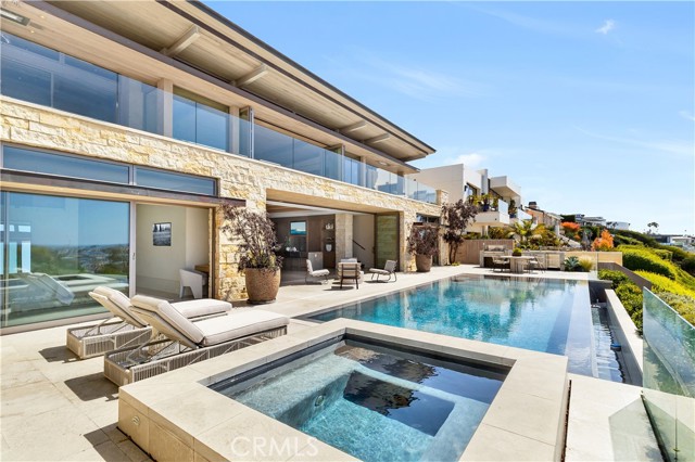 This unparalleled custom residence in the sought-after enclave of Irvine Terrace delivers the pinnacle of contemporary coastal luxury, commanding front-row views of Newport Harbor, Balboa Island, the Pacific Ocean, and Catalina Island. The inspiring design reflects the talents of architect Carlton Graham, alongside the craftsmanship of Steve Davidson Construction and Tom Waters. Natural elements that echo the home’s extraordinary setting are seamlessly incorporated throughout the two-level floorplan, encompassing four en suite bedrooms, a total of five full bathrooms, two half bathrooms, and approximately 6,232 square feet of living space. The main level is defined by striking architectural presence, with walls of floor-to-ceiling glass and disappearing doors framing a cinematic harbor panorama animated by passing yachts, fiery sunsets, and shimmering evening reflections across the water. A sophisticated great room with a fireplace and adjoining dining room, seamlessly transitions to a showpiece kitchen appointed with an island, premium appliances, white oak ceilings, and limestone floors and wall accents. The luxe primary suite, privately situated on the main level, is replete with a heated view deck spanning the width of the home and a built-in BBQ bar. The lower level features a dramatic lounge and media room with a full wet bar, a glass-enclosed office, and a temperature-controlled wine cellar with a full-size beverage refrigerator. Accordion doors lead to a terrace boasting an infinity-edge pool, elevated spa, and an outdoor kitchen with a professional-grade grill. With an extraordinary coastal setting and seamless indoor–outdoor design, the home reflects the finest elements of Corona del Mar living in Irvine Terrace, moments from Fashion Island’s world-class retail and dining, Newport Beach Country Club, and the Newport Harbor Yacht Club.