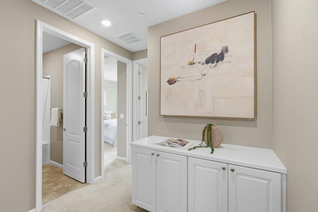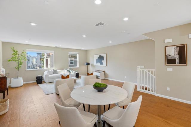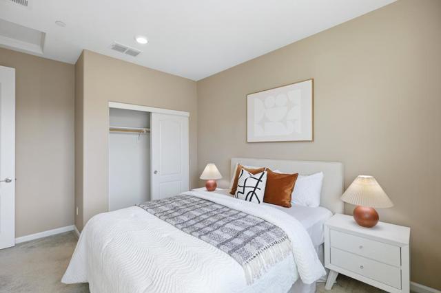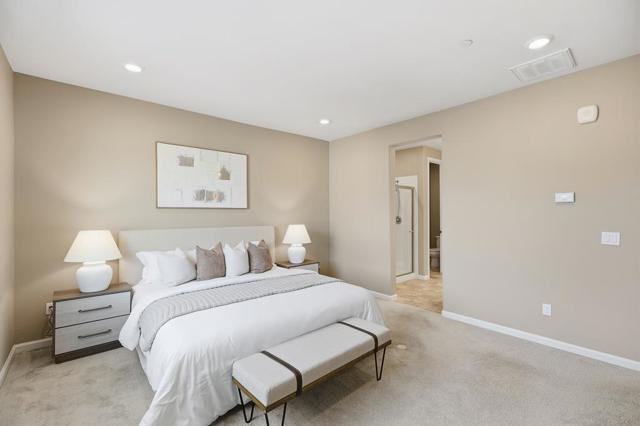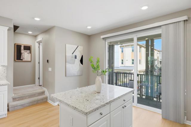 This stunning 2018-built KB Home townhouse perfectly balances modern elegance with functional design. With a desirable northeast-facing orientation, the residence is bathed in natural light through oversized windows, highlighting its airy, open-concept floor plan. At the heart of the home, the chefs kitchencomplete with sleek white cabinetry, a grand center island, quartz countertops, and premium stainless steel appliancesflows seamlessly onto a private balcony, ideal for morning coffee or evening relaxation. The luxurious primary suite features an expansive walk-in closet and a dual-sink vanity. For added versatility, the secluded ground-level bedroom suite is perfect for guests, a home office, or multigenerational living. Additional premium upgrades include a 3-zone HVAC system for personalized comfort, a true side-by-side two-car garage, and low HOA dues for added value and peace of mind. Unbeatable location: minutes from major tech campuses, BART, Great Mall, and major freeways. With access to top-rated Milpitas schools, this home offers a rare blend of style, convenience, and community.