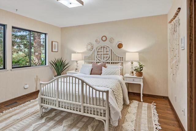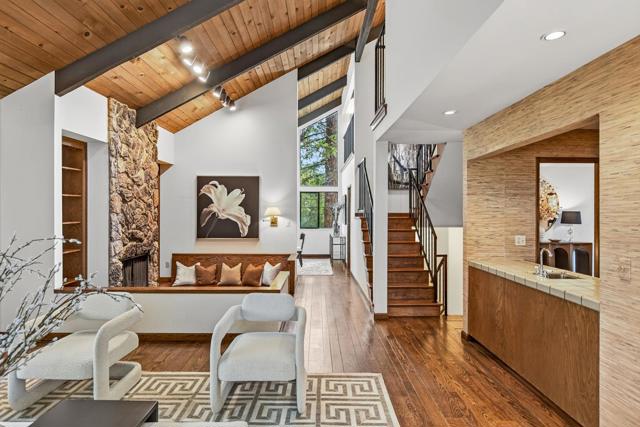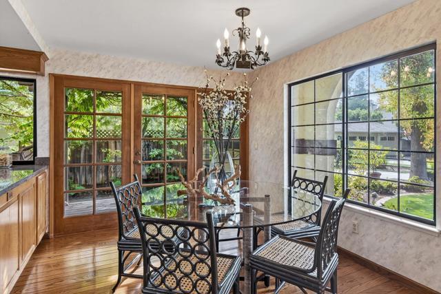 At the end of a private cul-de-sac in the desirable Highlands neighborhood, this ~3,542 square foot home offers a rare blend of space, immense privacy, and natural beauty. The flexible floor plan provides areas to gather, work, and unwind with four bedrooms, an office, and three full bathrooms. Enjoy as is, or reimagine the interiors to meet your individual needs and match your personal style. The main level showcases a living room with vaulted tongue-and-groove ceilings, sunken conversation seating with a natural stone fireplace, a wet bar, and peaceful tree views. The kitchen includes granite countertops, handsome wood cabinetry, and a casual dining area that opens to a pergola-covered patio, perfect for indoor/outdoor living. The lower level provides a family room with doors to the patio, two quiet bedrooms with access to a full bath, and versatile bonus rooms. Upstairs, the expansive primary suite enjoys vaulted wood-beamed ceilings and a cedar-lined walk-in closet, while the adjacent loft-style office has a sitting room and quiet workspace. Outside, the lush, tree-framed grounds create a private retreat with a pool, elevated spa, decks, lawn, and lounge patios. Moments from Foothill Crossing with Trader Joes, commute routes, and highly-acclaimed Cupertino schools.