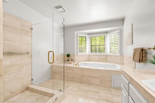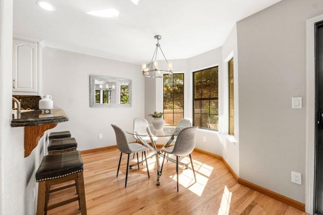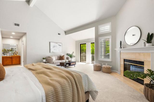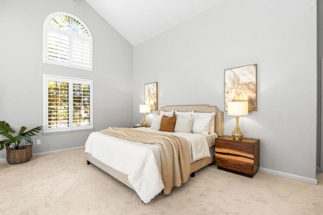 Rare end-unit townhouse in the peaceful Villas of Almaden, a gated community surrounded by majestic trees and natural beauty. This meticulously maintained 3-bed, 3-bath home offers 2,454 sq ft of light-filled living space with no rear neighbors and serene greenbelt , also a super quiet cul-de-sac location is another big plus. The Villa Rosa model is a sought-after floor plan featuring a ground-floor bedroom & full bathperfect for guests or multi-gen living. The dramatic two-story living room showcases abundant natural light and a marble fireplace. Adjacent dining/family room opens to a spacious deck, ideal for relaxing or entertaining. The updated kitchen includes a cozy breakfast nook, with counter seating and private patio just off the dinning area. Upstairs, the expansive primary suite offers vaulted ceilings, corner fireplace, private deck, and a spa-like en-suite bath with soaking tub, separate shower, double vanity, and walk-in closet. A junior suite with full bath completes the upper level. Also includes indoor laundry with washer/dryer and sink, a oversized 2-car garage w tons of storage. H.O.A. covers home / earthquake insurance. Enjoy community amenities: multiple pools, spa, tennis courts, & clubhouse. Come see this beautiful home and experience the Villas of Almaden