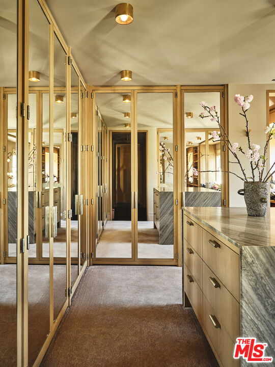 One of the most extraordinary properties to become available in Brentwood Park in quite some time. Widely published, extremely special, walled and gated Modern Traditional estate originally done by Thomas Proctor, the architect of some of the most beautiful homes ever built in Brentwood Park. Situated on a quiet street south of Sunset, in close proximity to the Brentwood Country Mart with captivating street presence, great sense of scale and light, the perfect floor plan and sun-filled gardens, this magical property recently underwent a complete top-to-bottom renovation by acclaimed designer, Kelly Wearstler, with no detail overlooked or expense spared, and the absolute finest of everything. Graceful, beautifully detailed grand scale formal entertaining rooms and fabulous "great room" consisting of fabulous cook's kitchen, breakfast area, family room and adjacent playroom/den that opens to outdoor living room with fireplace, park-like grassy yard, pool, spa, patios and detached guest house/gym/poolside cabana with fireplace and bar. Five-bedroom suites in the main house, including a sumptuous owner's suite with warm paneled walls, fireplace, lavish bath and two furniture grade walk-in closets. Other features and amenities include a large upstairs family room or office, movie theatre, two laundry rooms, full smart house system, security & cameras, extensive storage and oversized three-car garage. Set off the street, amidst beautiful gardens, this exquisite home done with integrity and quality is truly a feast for the senses and offers the very best Brentwood lifestyle.