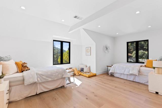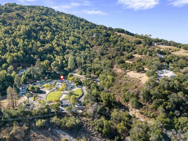 Location, Location, Location! An elevated luxury estate, on three lots, in an exclusive Los Gatos neighborhood that's private, yet only a stones throw away from downtown, and easily accessible with no dangerous long winding roads to traverse. Inside, the residence flows gracefully between formal and casual living areas, each finished with high end materials and thoughtful architectural details. The gourmet kitchen is a chefs dream with premium appliances, custom cabinetry and a layout that opens to sunny dining and family spaces, with expansive windows that flood the home with natural light and connect spacious interior rooms to terraces, courtyards and a multifunctional backyard. Wellness and recreation are well covered with a gym, yoga studio, spa quality steam & sauna, and indoor/outdoor areas designed for entertainment. Outside, you'll find resort style amenities including, a beautiful pool and spa, an outdoor kitchen, and multiple seating areas framed by picturesque views and the soothing sounds of flowing water. The 2 Bed Guest unit with its own Garage is a home of its own, ideal for Mult-Gen Families. Meticulous systems and high end upgrades throughout make this mansion in the hills a true turn key opportunity for those seeking privacy, elegance, and modern comfort.