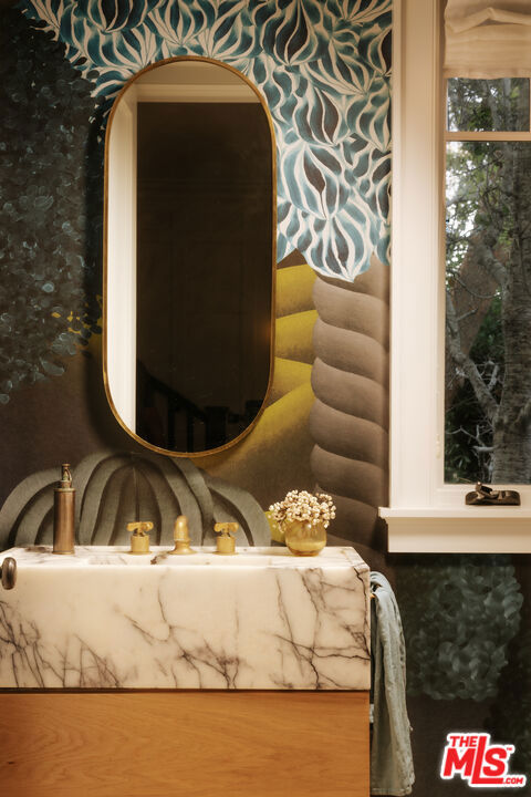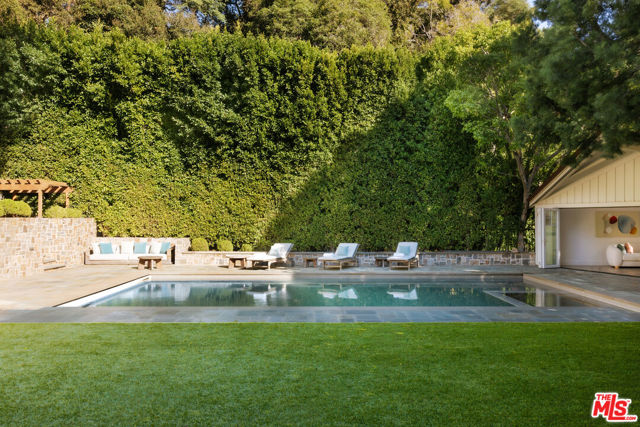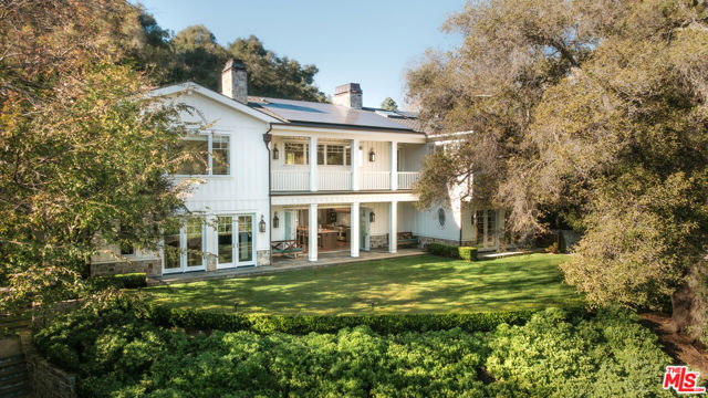 Nestled in the coveted enclave of Lower Mandeville Canyon, there is a quiet kind of prestige where both serenity and privacy are uniquely yours to experience. This elevated compound situated on nearly one acre offers expansive grounds with two large flat grassy areas for relaxation and play, a sports court, and stunning pool with spa. The main residence that was designed in collaboration with interior design firm, Maurice Gadson Design, reflects a beautiful balance of elevated design, warmth, and craftsmanship. The main level offers one guest bedroom with five additional bedrooms on the second floor. At the heart of the home, the dramatic living room and kitchen rise with soaring ceilings and open effortlessly to the gardens beyond, creating a seamless dialogue between indoors and out. A custom wood-paneled media room and secondary family room offer space designed for both comfort and versatility. Throughout the home, every element has been thoughtfully curated: Samuel Heath and Waterworks fixtures, vintage French lighting, textiles by Holly Hunt, Thomas Lavin, and Schumacher, Missoni runners, Calcutta stone, bespoke millwork, and striking Christian Lacroix wallpaper. These layers of texture speak to a home of substance where quality construction meets authentic character. Outdoors, an inviting entertaining space with outdoor kitchen, fireplace and dining area overlook your very own vineyard. Tucked away at the end of the garden is a lovely pool house for work, entertaining or rest. Boca de Canon is not simply a property, but a rare and irreplaceable setting. We welcome you to come and visit!