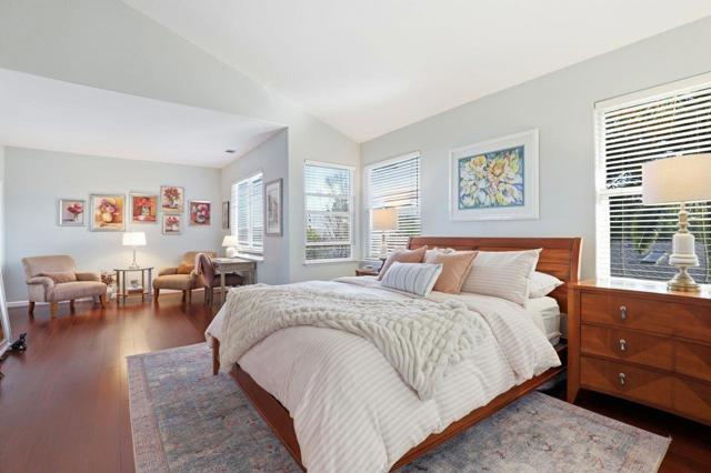 Beautiful move-in ready 4 bedrrom,3 full bathroom home with custom upgrades throughout, located in the desirable Casablanca neighborhood in northwest quad of Gilroy, within walking distance to Luigi Aprea Elementary School. Flexible floor plan with downstairs bedroom and a full bathroom. Vaulted ceilings, oversized great room, and California bamboo wood flooring throughout to create a bright, open feel. One upstairs bedroom features a loft. Kitchen features Dolomite Italian leathered marble countertops, Italian tile backsplash with white-washed brick accents, premium Crystal cabinetry, Bosch double ovens, and a Wolf 6-burner gas range with match hood. Oversized primary suite with sitting area, walk-in closet, and remodeled bathroom with large walk-in shower, soaking tub, and Carrera marble vanities. Dual pane windows, gas fireplace and designer light fixtures. Interior and exterior recently painted. Private backyard with pool, landscaped grounds, and brick and cobblestone patio. This well maintained property is one you will not want to miss!
