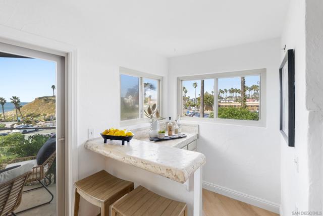 Welcome to Las Brisas. A rare, ground-level ocean view residence offering effortless single-level living with no interior or exterior steps. Perfectly positioned overlooking iconic Fletcher Cove, this exceptionally spacious two-bedroom, two-bath home spans approximately 1,852 square feet, an uncommon offering for condominium living that truly feels like a detached coastal retreat. Designed for comfort and livability, the open-concept floor plan features expansive living and dining spaces that flow seamlessly to one of two ocean-view patios, creating the ideal setting for indoor-outdoor coastal living. A second private patio extends from the primary suite, allowing you to enjoy ocean breezes and sunset views from the comfort of your bedroom. Both bedrooms are generously scaled and include oversized walk-in closets — a rarity in beach-close properties. The thoughtfully designed kitchen and bathrooms offer abundant space and functionality, complementing the home's open layout and residential feel.The residence has been refreshed with new flooring and interior paint, offering buyers a move-in ready opportunity with timeless coastal appeal. Located just moments from the vibrant Cedros Design District, local dining, boutique shopping, beaches, and the Solana Beach train station, this home provides exceptional walkability while maintaining privacy and tranquility within the community.With its rare size, single-level layout, abundant storage, and sweeping ocean views, this residence offers the comfort and presence of a single-family home with the convenience of condo living.