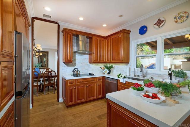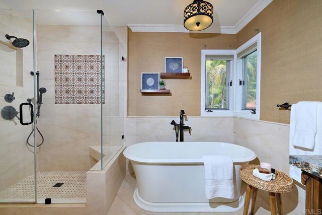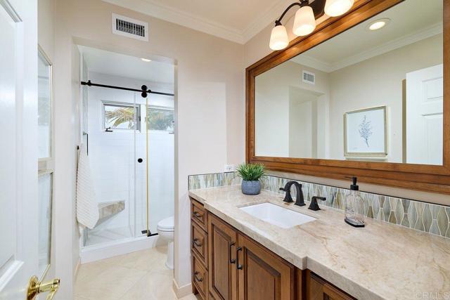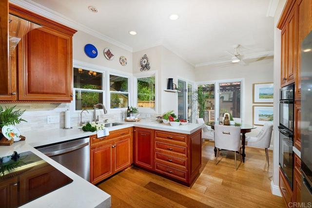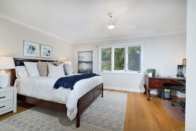 13512 Caminito Carmel – a refined & welcoming home in the gated community of Point Del Mar, offering the perfect blend of comfort, space, & coastal living. Just one mile from Torrey Pines State Natural Reserve, the beach, & the heart of Del Mar. With 3 BRs, 2.5 BAs, & approximately 2,539 square feet, the home is designed for everyday living & easy gathering. You will find spacious living areas, French Oak wide-plank wood flooring, & thoughtful updates throughout that create a warm, inviting feel from the moment you arrive. The remodeled kitchen, updated in 2022, opens to spaces where family meals & conversations naturally come together. Additional highlights include decorative wrought-iron gates & French doors, upgraded windows, numerous fireplaces, luxury freestanding tub in the primary bath, laundry room, a whole-house water softener, A/C, 2-car garage w/epoxy floors, abundant storage, & EV charging. There are simply too many upgrades to mention. The layout is especially appealing, with all bedrooms & full baths located near the primary suite—offering comfort, convenience, & peace of mind. Outside, there is room for everyone to enjoy. Set on one of the larger lots in the neighborhood, the private backyard & courtyard create a special setting for play & relaxation. Gather around the outdoor fireplace, enjoy outdoor meals with friends at the built-in BBQ center, garden in the raised beds, & make memories in your own backyard retreat. Surrounded by palm trees, fruit trees, flowers, & lush greenery, the outdoor spaces feel peaceful, private, & made for time together. Point Del Mar amenities include a secure, gated entry, heated pool & spa, two lighted tennis & pickleball courts, basketball hoop, a spectacular ocean-view common area, beautifully maintained grounds, & trash service included with the HOA. Elegant, private, & moments away from the coast—this is a home where everyday life feels a little easier & family time comes naturally.