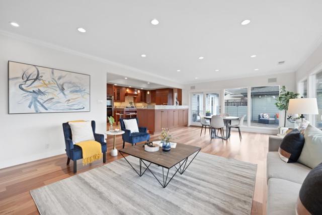 Set on an expansive ±10,968 sq ft flat lot in Baywood Park, this exceptional single-level home offers rare scale, views, and flexibility. Featuring 5 bedrooms and 3 full bathrooms, the layout supports both everyday living and long-term versatility. Western-facing exposure captures sweeping views toward Crystal Springs Lake and dramatic sunsets that become an everyday routine. Interiors showcase wide-plank hardwood floors, abundant natural light, skylights, and seamless indoor/outdoor flow. The chefs kitchen anchors the home with custom wood cabinetry, natural stone surfaces, a furniture-style island with built-in wine refrigerator, professional gas cooktop with custom hood, double wall ovens, and generous storage. Living and dining areas open to a large paver patio, private low-maintenance yard with premium turf, deck and raised planting beds. The primary suite includes dual walk-in closets and en-suite bath. A detached two-car garage also offers an attached separate bonus space ideal for home office or fitness studio, plus attic storage in both the garage and main home. A rare combination of views, lot size, and single-level living in Baywood Park is exactly what you have been looking for to call.. Home