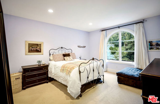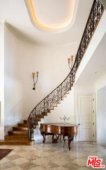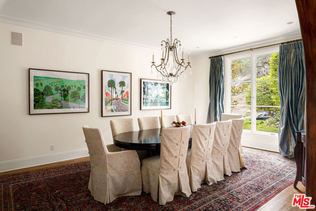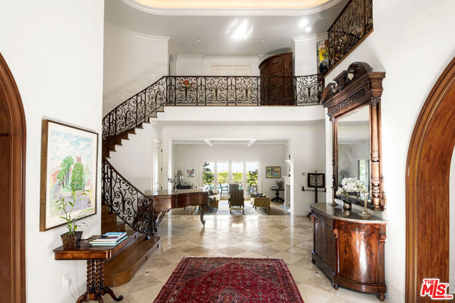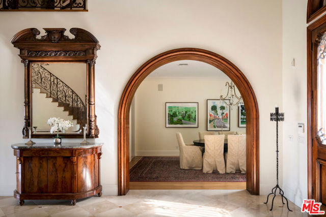 Set behind the prestigious gates of Mulholland Estates, this exceptional Beverly Hills estate embodies refined sophistication, scale, and privacy at the highest level. Positioned on a sprawling lot just under half an acre, along one of the community's most coveted cul-de-sac streets, the residence spans nearly 8,000 square feet, offering 7 bedrooms and 8 bathrooms designed for both grand entertaining and elevated everyday living. A dramatic double-height entry introduces the home with soaring ceilings, a sweeping curved staircase, and architecturally striking arched passageways. Expansive living spaces are thoughtfully oriented to capture serene greenery and sweeping views, creating a seamless connection between the interior and its natural surroundings.The chef's kitchen flows effortlessly into the main living areas, all overlooking a resort-style backyard complete with a private pool and trellised veranda, delivering a true indoor-outdoor lifestyle synonymous with Southern California luxury. The primary suite serves as a private sanctuary, featuring a fireplace lounge, an expansive walk-in closet, and a spa-inspired bath with dual vanities. A private terrace opens to breathtaking jetliner views, offering a quiet escape above it all. Additional amenities include a temperature-controlled wine cellar, a fully equipped gym, and multiple spaces designed for both relaxation and entertaining. Rarely does an estate of this scale, privacy, and caliber become available within Mulholland Estates. This is a true retreat in one of Beverly Hills' most sought-after guard-gated communities.
