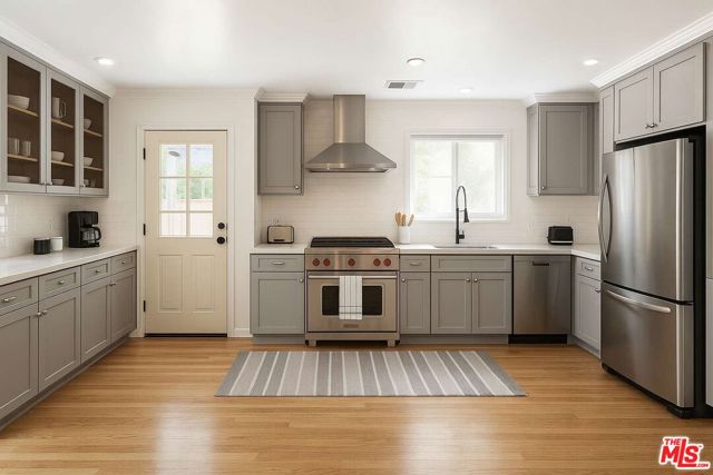 Welcome to 14325 Greenleaf St, a stunning California Bungalow in the heart of Sherman Oaks. This exquisite home offers 4 bedrooms and 3 bathrooms, blending modern amenities with classic charm. The spacious layout includes a gourmet kitchen equipped with high-end Wolf and Sub-Zero appliances, making it a chef's dream. Complete with AV hookups for all your electronic needs, the home is audio capable for the musically inclined. The home is surrounded by lush landscaping, providing a serene escape from city life. The backyard is a true oasis, featuring a large pool and a top-notch BBQ setup for endless summer fun. The property sits on a large, private lot with a gated driveway, a detached garage, and a bonus room with a bathroom. Upgraded lighting throughout enhances its elegance, while the primary bedroom upstairs includes a walk-in closet and oversized bathtub. Recently painted and landscaped, the home also includes a Ring doorbell for added security. Situated near Ventura Blvd, enjoy the convenience of shops, restaurants, and bars, as well as top private schools. The neighborhood offers a mix of different architectural styles and safe environment, making this an ideal place to call home.