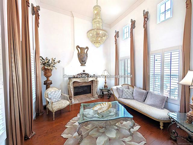 Exceptional gated community in Poway scholl district. Well maintained home with timeless style, generous living spaces, a resort like ambiance. Soraring ceilings, plantation shutters, warm natural light throughout. Chef's kitchen features maple cabinetry, granite counters, center island with breakfast bar, double ovens, and stainless appliances. Upstairs primary suite has a spacious bath with soaking tub, dual vanities, walk-in shower, and separate closets. Small pets considered.