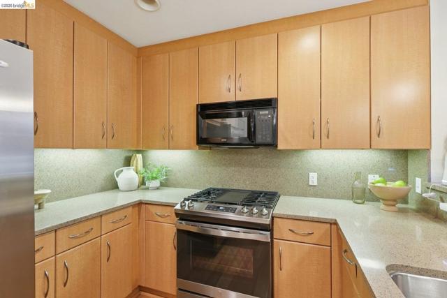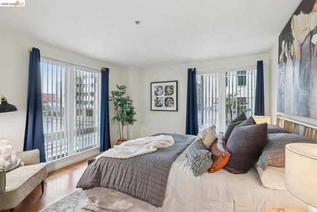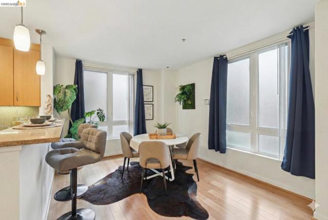 RARE corner unit townhome style condo for sale in the Jade complex at the heart of Downtown Oakland. Prime location 2 blocks to BART and tons of restaurants and bars most fitting for urban dwellers. Entering the property, you are welcomed with a private garden patio. Bright and airy, the property is fully upgraded with new bamboo floors, the large open layout kitchen with desirable features such as breakfast bar, stainless appliances, and granite counters tops. Upstairs, light filled owner suite looks out on the urban world. Spacious private bath and large walk in closet. Guest bedroom has private balcony and accompanying bath with in-unit washer and dryer. Property comes with secure parking for one car and bike parking. A large rooftop deck with barbecue and great views of Oakland and SF. Close to Oakland's downtown City Center, Fox and Paramount theaters, and restaurants of Uptown and Old Oakland.