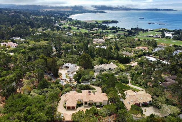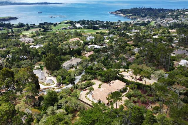 You are going to love this spacious, private, gated estate with fantastic views of Stillwater Cove located above The Lodge at Pebble Beach. There are large south facing windows bathing the interior with natural light and frame the scenic beauty of Carmel Bay and Point Lobos and the Pebble Beach Golf Course. The main level has high ceilings with exposed beams and is home to the beautiful primary retreat, an open space for your living room, dining area, breakfast nook that is bookended by two marble fireplaces and of course the kitchen with a sizable butler's pantry. Take the elevator down to the lower level where there is a family room, an amazing home theater with murals of Pebble Beach painted on the wall, a workout room and a wine cellar with a wine bar and 3 more ensuites and a large guest suite.