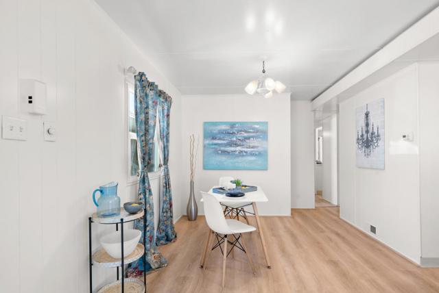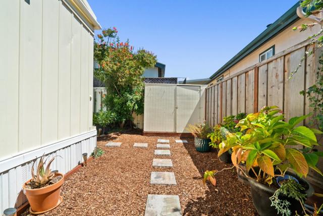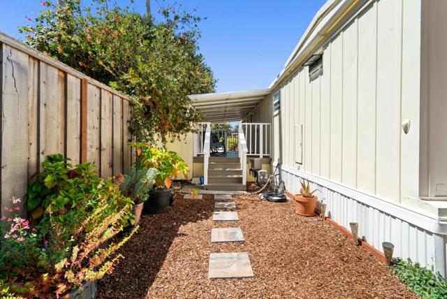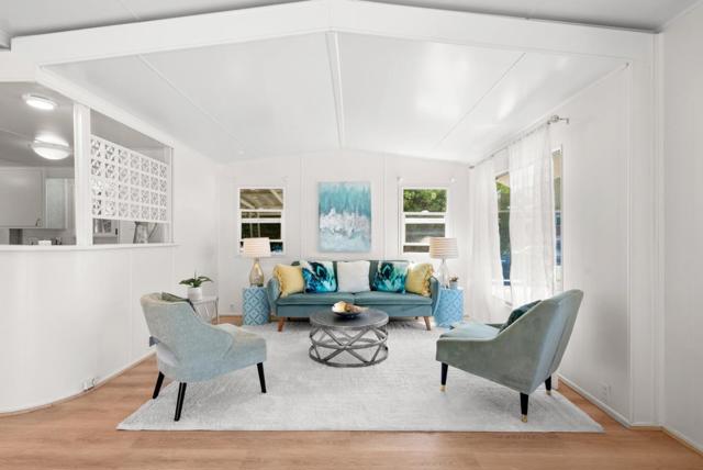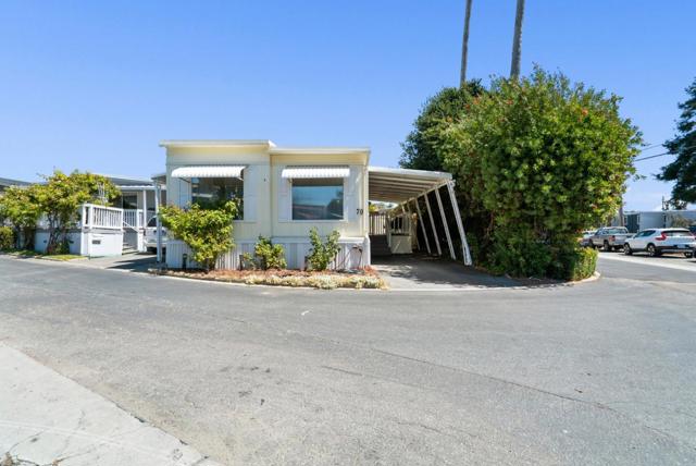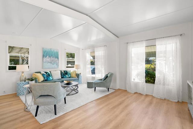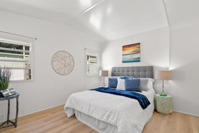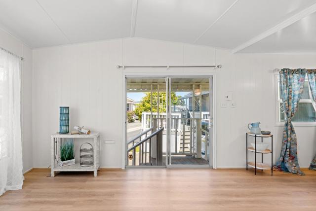 New price....This Beauty by the Beach is the affordable home you've been waiting for! Located in one of the most desirable senior parks in Santa Cruz with rent control, this home really shines and it's ready for you to enjoy this slice of Heaven. Premium location in Shoreline Mobile Estates, it sits on the very edge of park closest to the beach with no neighbor on one side. This gives you a very private feel. Several updates include a new roof, plumbing, flooring, paint, updated bathroom & kitchen, new back landscaping, front & back irrigation and 2 back sheds. Home has lovely vaulted ceilings and primary bdrm has a large walk-in closet. Some furniture is included in the sale. Short walk to the Sunny Cove Beach & Santa Maria's huge dog friendly beach! Easy bike ride to the Yacht Harbor or Capitola. Live The Beach Life Dream and come see this Treasure today.