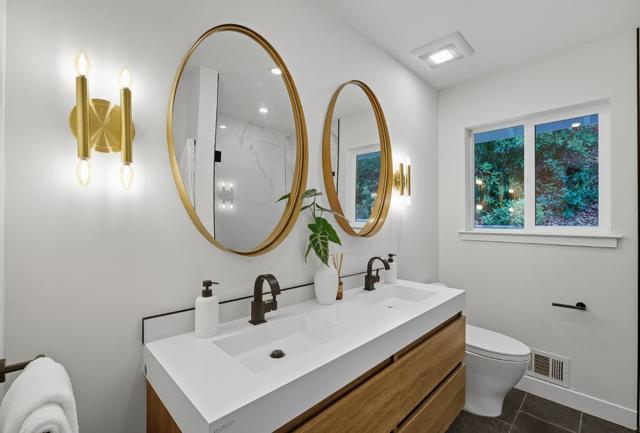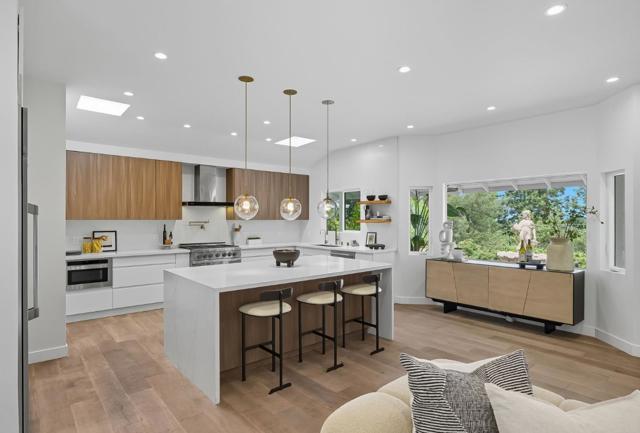 Perched on a private half-acre with sweeping views of Silicon Valley, this modern retreat blends city convenience with mountain serenity. The 3 bed, 2.5 bath home welcomes you with a light-filled open floor plan, soaring skylights, and warm engineered hardwood floors. A sleek modern kitchen with professional-grade appliances anchors the space, ideal for cooking and gathering. Recessed lighting, dual-pane windows, and an electric fireplace add to the elevated feel. A motorized gate provides privacy as you enter the property, leading to redesigned hardscape with concrete and pavers. The detached 2-car garage connects to the home with a breezeway, creating a seamless indoor-outdoor flow. Completely tucked away yet minutes from dining, shopping, and freeways, this is the rare home that feels like a getaway but lives like the city. Campbell Union schools: Alta Vista, Union Middle, and Leigh High. A must-see to truly appreciate the setting and style.