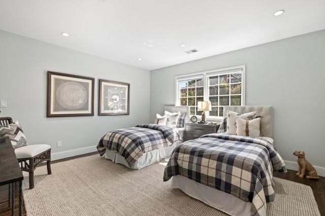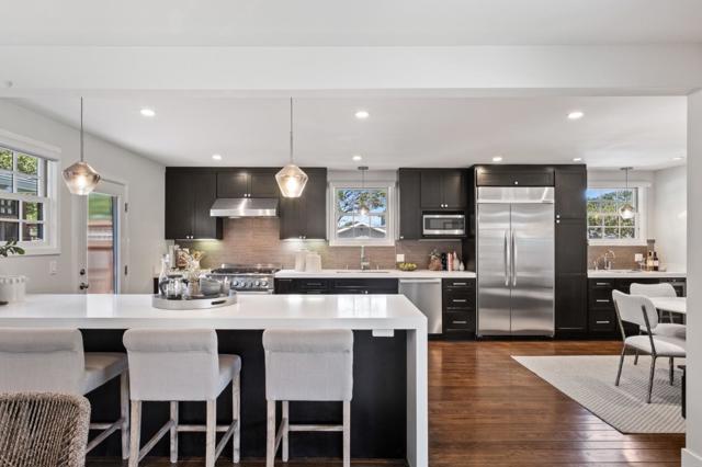 Discover a beautifully updated home in Burlingame's Ray Park neighborhood. Set on a quiet, tree-lined street, this single-story residence offers 3 bedrooms, 3 bathrooms, and approximately 1,980 s/f. The open-concept kitchen features floor-to-ceiling espresso cabinetry, a white quartz waterfall island, and stainless steel appliances, including a DCS by Fisher & Paykel gas range with Bosch hood, Miele dishwasher, KitchenAid French door refrigerator, and integrated microwave. A custom breakfast nook with a secondary sink and wine fridge. A see-through fireplace with floor-to-ceiling porcelain connects the living and dining spaces, with hardwood floors throughout. The primary suite includes an en suite bath, while two bedrooms share a bath with mosaic tile and glass-enclosed tub and shower. Additional office and guest bath. Private courtyard with covered patio, lawn, mature trees, and BBQ area with gas hook-up. Additional amenities include dedicated laundry area, two-car garage, and 220V outlet. Close to top-rated schools, downtown Burlingame, and easy commuting options via Highway 101 to San Francisco.