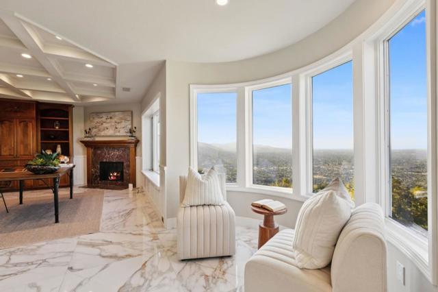 Set along one of Los Gatos most sought after ridge lines, this extraordinary estate captures sweeping yet intimate panoramas. Nearly every window frames views across downtown Los Gatos, Vasona Lake, the surrounding mountain ridges, and even the distant skylines of San Francisco, Oakland, and San Jose. Wrapped in privacy and framed by elegant landscaping, this breathtaking residence combines grandeur, comfort, and a deep connection to its natural setting. A tall wrought-iron entry door accented by mosaic glass opens to a grand foyer with volume ceilings and an elegant chandelier. Dual staircases sweep upward, creating balance and presence, while large windows allow natural light to pour in. Radiant heated marble and tile floors flow throughout the property for year-round comfort. The home unfolds with thoughtful flow and scale. With an expansive primary suite, four guest bedrooms, executive office, attached ADU with full kitchen and bath, detached pool house and two finished three-car garages, this estate is a home of scale, refinement, and enduring presence. With panoramic views dusk to dawn, an elegant design and resort-style amenities, it offers a true Los Gatos estate experience private, expansive, memorable, and a wonderful place to call home.