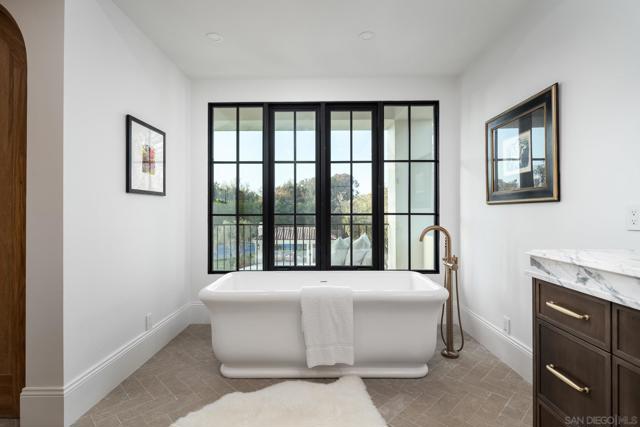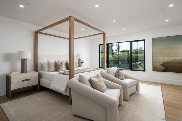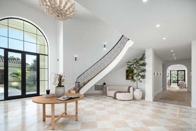 Just unveiled on the prestigious South Side of Fairbanks Ranch, this fully-fenced home is a completely rebuilt two-story estate that blends modern sophistication with a relaxed Palm Springs vibe. From the moment you enter, soaring high ceilings, abundant natural light and designer finishes set the tone for this show-stopping transformation. Set on an expansive 1.73 acre private lot surrounded by lush landscaping and a private tennis court, this home offers the ultimate in luxury and seclusion. The chef’s kitchen features top-of-the-line appliances, custom cabinetry, and an open-concept design that flows into a stunning bar, wine cellar and entertaining area–perfect for hosting gatherings in true California style. A downstairs bedroom with ensuite bath and walk-in closet provides flexibility for guests or multigenerational living. Upstairs, every bedroom boasts its own ensuite bathroom and walk-in closet for comfort and privacy for all. The master suite is a true sanctuary featuring two balconies, a private gym, lounge area, sauna, dual bathrooms and a large custom closet designed for the ultimate in luxury living. The expansive flat open lot includes an extended driveway to Porte-Cochere entrance, large entry courtyard, two built-in outdoor BBQ's, 4-car garage, pool/spa and detached covered patio with fireplace, full bathroom and kitchenette. Located within the 24-hour guard-gated community of Fairbanks Ranch, residents enjoy resort-style amenities including private lakes, walking trails, tennis courts and equestrian facilities. This home is a must see!