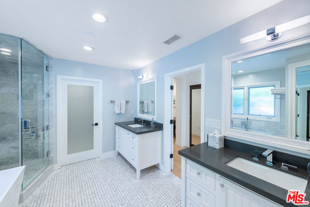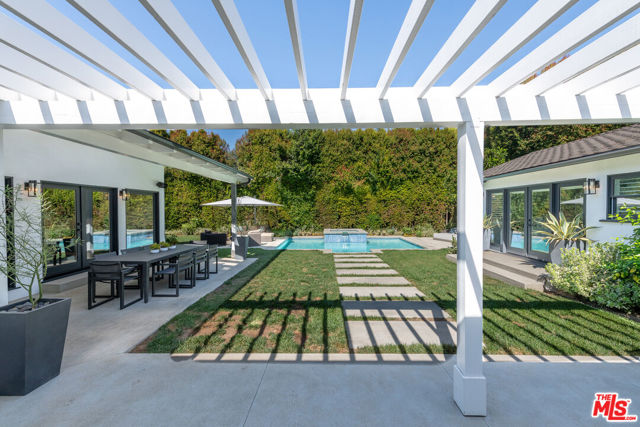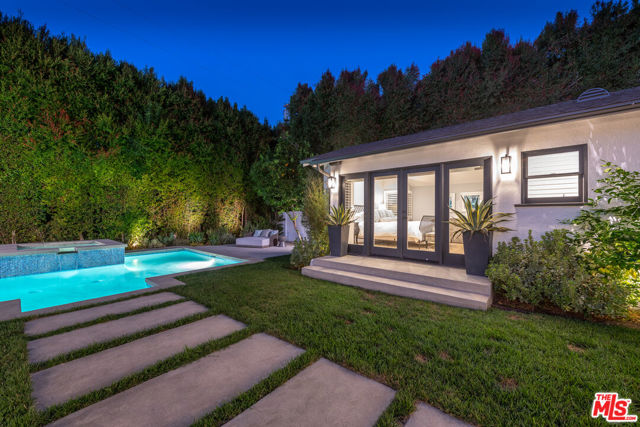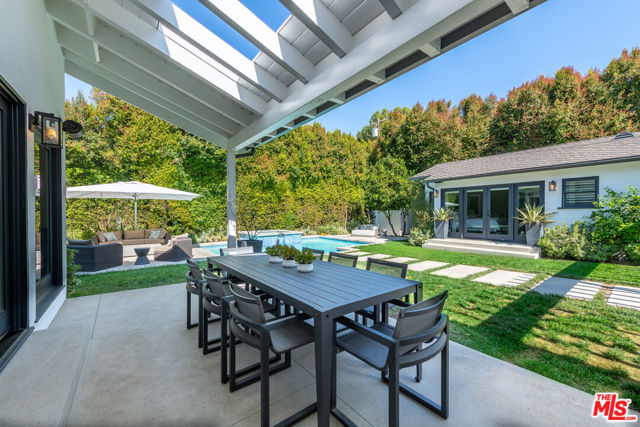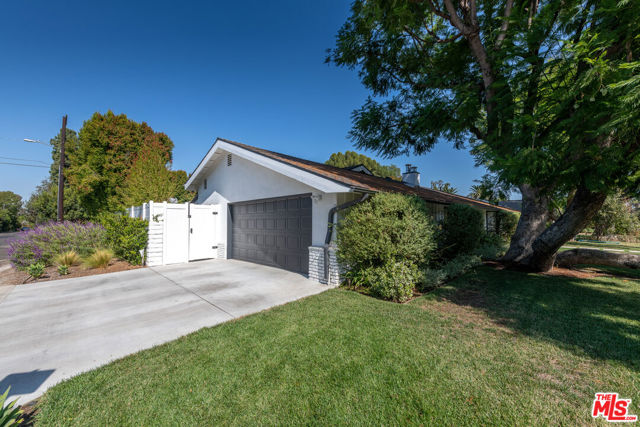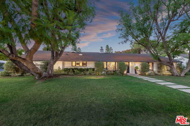 An Extraordinary California Ranch in Prestigious Amestoy Estates. Gracefully positioned on a sprawling corner lot in the highly coveted Amestoy Estates, this exceptional California ranch offers a rare blend of refined elegance and timeless charm. Showcasing captivating curb appeal, the residence features 4 bedrooms, 4.5 bathrooms, and approximately 4,132 square feet of living space, set on an expansive 12,197-square-foot lot. Step inside to an impeccably curated interior highlighted by an open-concept floor plan, designer finishes, rich oak wood flooring, and premium fixtures throughout. French doors effortlessly blur the line between indoor and outdoor living, while abundant natural light fills every space. The home unfolds to reveal a formal living room with fireplace, an elegant dining room with exposed ceiling beams and its own fireplace, a dedicated exercise room or home office, and an impressive game room adorned with a trestle ceiling and a full wet bar complete with beverage cooler and wine storage, perfect for entertaining. At the heart of the home, the gourmet kitchen is both stylish and functional, featuring a marble center island, slate countertops, custom white cabinetry, breakfast bar seating, skylight, and top-tier Viking and Thermador appliances. The kitchen seamlessly opens to a warm and inviting family room. The luxurious primary suite serves as a private retreat, offering vaulted ceilings, dual walk-in closets, a makeup vanity, and a spa-inspired bathroom with dual quartz vanities, a dramatic soaking tub, and basket-weave marble flooring. Two additional generously sized bedrooms enjoy peaceful views of the manicured front yard. Outdoors, the resort-style backyard is a true sanctuary, enveloped by mature hedges for exceptional privacy. Highlights include a covered loggia for al-fresco dining, expansive grassy lawn, outdoor BBQ kitchen, fire-pit, and a stunning pool and spa with water feature, creating an idyllic setting for both relaxation and entertaining. This remarkable residence seamlessly merges modern sophistication with classic California ranch appeal, offering an unparalleled lifestyle in one of the Valley's most sought-after enclaves. An exceptional opportunity to own a truly exquisite home.