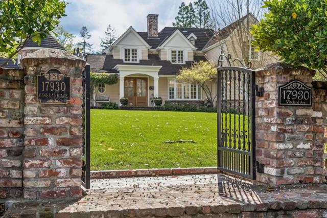 This spectacular Monte Sereno estate showcases exquisite architecture, curated landscape, and exceptional craftsmanship, embodying timeless French Country elegance. Set on more than 30,000sqft, the residence was comprehensively reimagined during an extensive 2020-2022 renovation, preserving romantic architectural character while elevating every system and finish. A decorative brick wall, iron gates, sweeping lawn, and mature trees create a storybook arrival. Inside, ten-foot ceilings, bespoke millwork and wide-plank oak floors introduce refined living spaces designed for both everyday comfort and elegant entertaining. The kitchen stands as a culinary showpiece with a LaCanche range, honed quartzite surfaces, mosaic stone backsplash, and a large island with seating for eight. Five ensuite bedrooms and executive office span two levels, including two main-level suites ideal for guests or multigenerational living. The primary suite enjoys a fireplace, private balcony, and spa-inspired bath with radiant heated marble floors and a freestanding tub. A separate pool house with kitchen, living area, two bedrooms, and sauna adds remarkable flexibility. Expansive grounds surround the pool, spa, and outdoor kitchen beneath a beautiful loggia, creating an inviting setting for outdoor living.