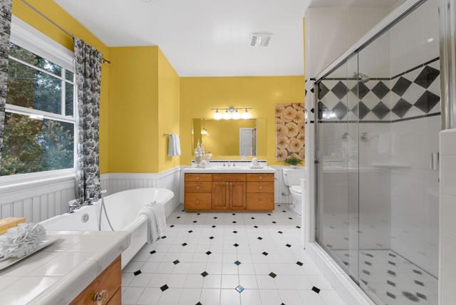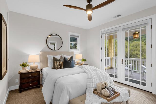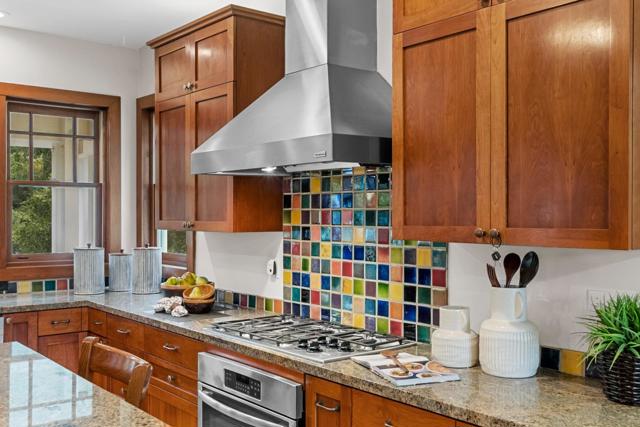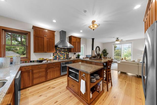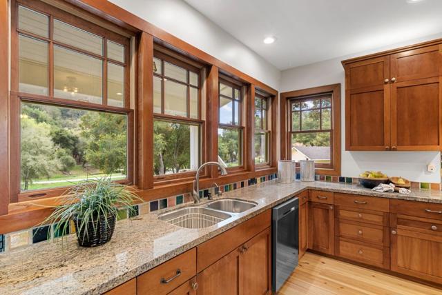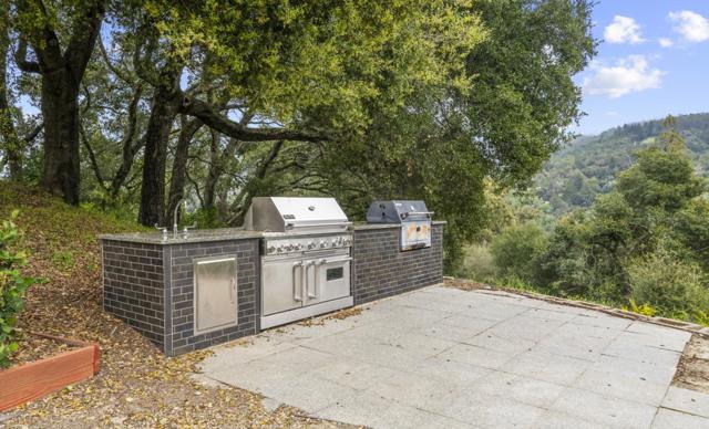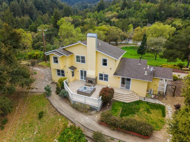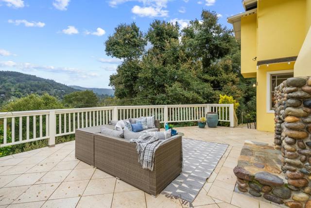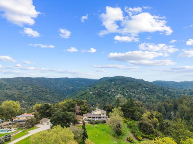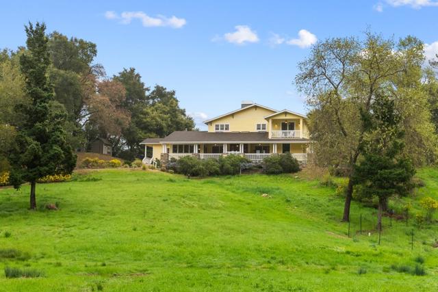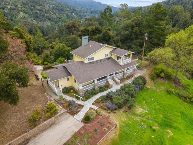 Country Craftsman close to downtown Los Gatos! An idyllic lot with gorgeous views in all directions to oaks, redwoods, birds, and other wildlife. You won't find this kind of property anywhere in town. 4bd PLUS a large bonus room! Don't take the Idylwild exit - take the 1st easy exit instead! Exit Bear Creek Rd. to the beautiful Old Santa Cruz Highway backroad. Natural light throughout from a beautiful stained glass entry, double doors, and skylights. 1st floor features wide pine floors and river rock fireplace, open concept living in the living/dining room, the kitchen/family room, plus large laundry/mudroom, 2 BRs, and 1.5 baths. 2nd floor with primary suite featuring balcony views over the meadow and mountains, large bath, walk-in closet, 4th BR, large bonus rm, and AC. Covered front porch with breakfast nook and relaxation area overlooks a meadow, pond and forested hillside! Back patio with fireplace looks out to the canyons beyond. Fenced backyard with fully equipped outdoor kitchen and views! Side yard has a raised-bed garden and fruit trees including juicy, mature lemons. Top Los Gatos Schools! This is a one-of-a-kind, custom-built gorgeous home for one who loves blue sky, fresh air, nature, and being close to downtown. A large, private lot in a beautiful neighborhood.