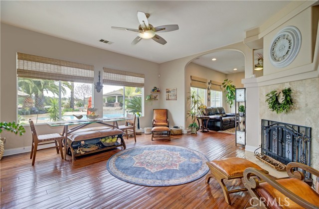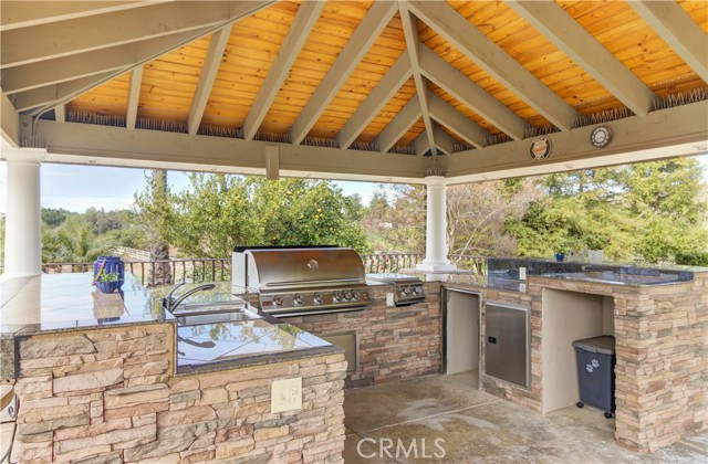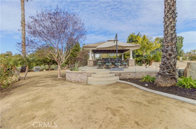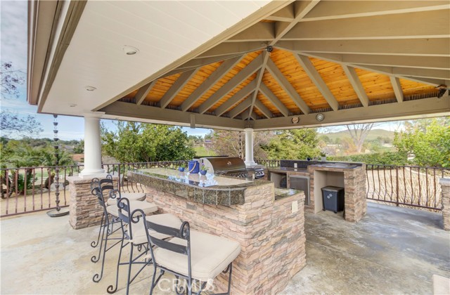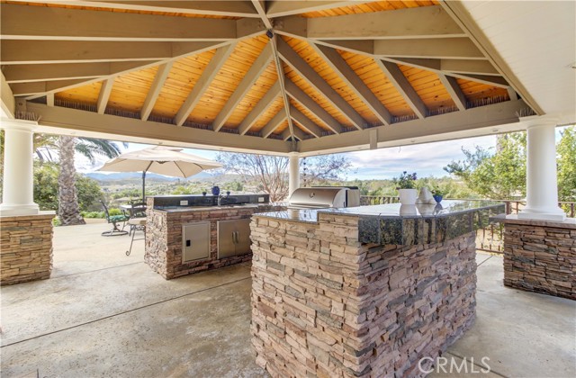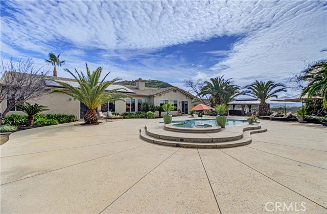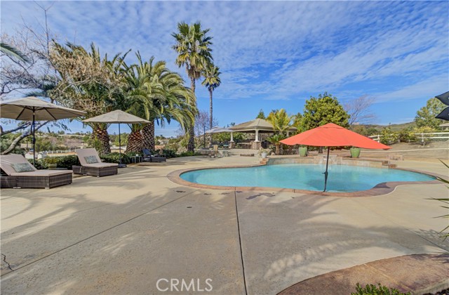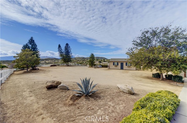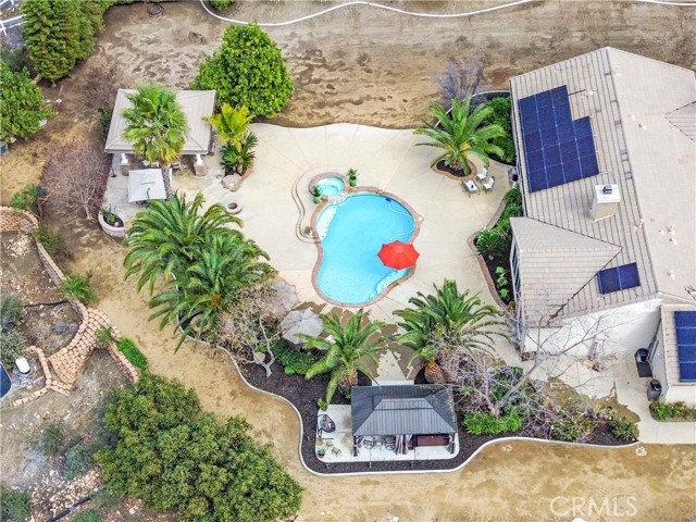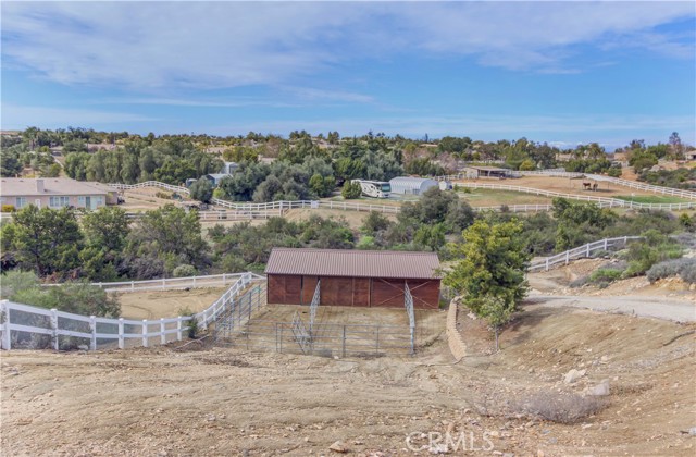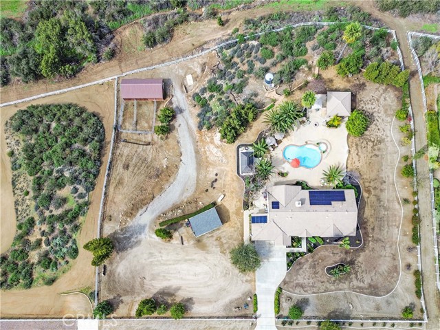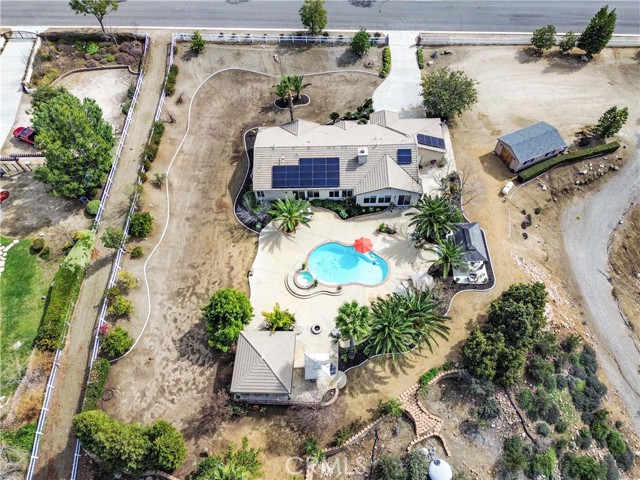 Welcome to this beautiful One-of-a-Kind RANCH ESTATE located in the highly desired GAVILAN HILLS community near LAKE MATHEWS. The home is on a 1.8 acre fully usable PREMIUM VIEW LOT. This entertainers delight has breathtaking views of the surrounding hills and pool, and is situated to give you plenty of privacy. There are multiple entertainment and seating areas to enjoy those sunsets and views, with lighting to continue your enjoyment throughout the evenings. In addition to the large POOL with waterfall and in-ground SPA, there is an enormous FULL KITCHEN CABANA, a CUSTOM SUNKEN STONE OUTDOOR SHOWER, FIRE PIT, and a covered seating area with electricity nearby. There are 4 Avocado, multiple Citrus & Fruit Trees and lush Palm Trees, with water plumbed throughout the property for your convenience. For you horse lovers, the property has a 2-Stall CASTLEBROOK BARN, with tack room, wash rack and turn-outs. In addition to the three car garage, there is a LARGE drywalled WORKSHOP with an additional storage area. A white split rail fence encircles the property with an electric gate at the entrance. There is ample room for your RV, BOAT, and TOYS on this pristine property. The spacious one story floorpan has 10' CEILINGS with walnut hardwood flooring in the main living areas, half bath & 4th bedroom/office. There is a formal dining room with coffered ceilings, and a wood burning FIREPLACE in the den and casual dining area that opens to the gourmet kitchen. The kitchen has granite countertops and a built-in ReadyHot Dispenser at the sink. The spacious primary bedroom has views of the pool and hills as well, and opens up to the pool area. The upgraded bathroom has a jet soaking tub with separate shower, and an enormous closet with top of the line dark wood buildouts.The 24 TESLA solar panels and inverter were recently upgraded and replaced in 2025, ensuring low electric bills. (Tesla Power Purchase Agreement- 10 years left of agreement. See attached information in the supplements.) This home is in TURN-KEY condition with new paint and upgrades everywhere you look. There is access to the 20+ MILES of GROOMED RIDING TRAILS and the COMMUNITY EQUESTRIAN CENTER with a lighted riding area, round pens and covered stall. HARTFORD SPRINGS RESERVE is in this GAVILAN HILLS community, as it is a wonderful 325 acre park that has several trails, including the WILDFLOWER TRAIL. Check out the waterfall and trails in the nearby BLM land as well!