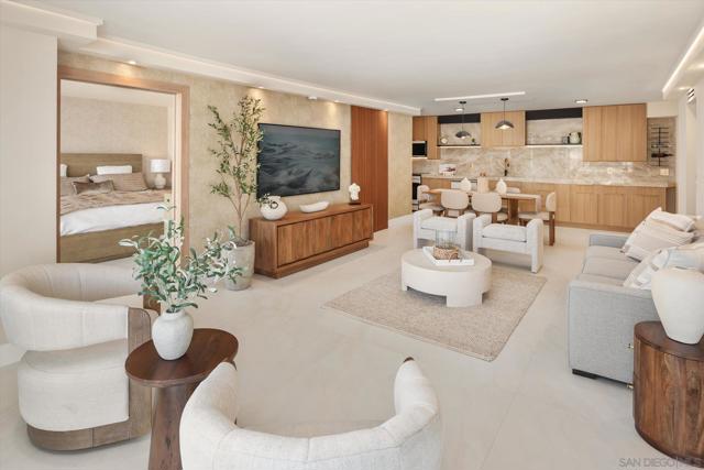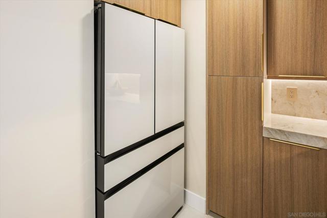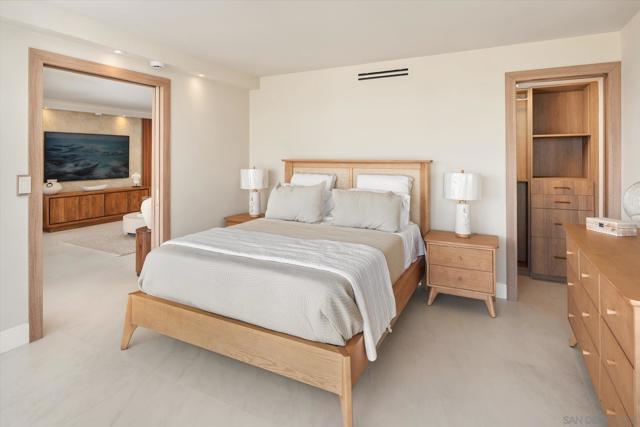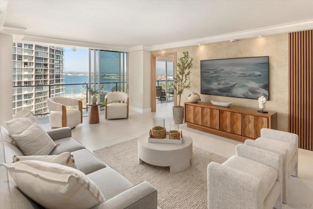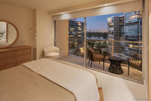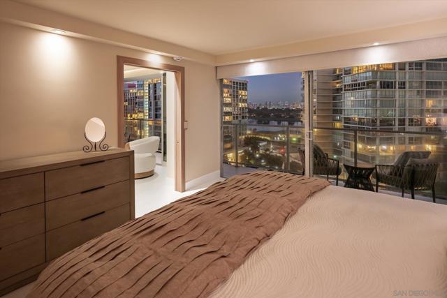 NEVER LIVED IN - newly renovated masterpiece designed by Michael Roy and custom built by Yaz Kadra, with Saraay Remodeling, offering breathtaking bay & city skyline views. Impeccably crafted with high-end finishes, appliances, and fully custom furnishings, this residence has been meticulously reimagined, down-to-the-studs, with new electrical, plumbing connections, HVAC, and ducting systems. Upon entering, you’ll be greeted by an immediate sense of spaciousness, with split bedrooms designed to maximize the stunning views through extra wide custom pocket doors. Experience the elegance of 48 x 48 imported Porcelain tile flowing out to the balcony. The 9ft non- dropped ceilings enhance the sense of space, while smart storage solutions maximize organization. A culinary haven, the kitchen features custom European cabinetry, top-of-the-line, trendy white glass appliances and the timeless sophistication of 3” Quartzite Taj Mahal counters. Designer walk- in closets are illuminated by ambient LED lighting. A newly added versatile den, perfect for a home office or guest suite, features a custom-sized bed with integrated storage.