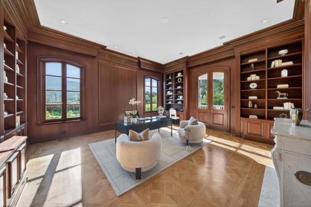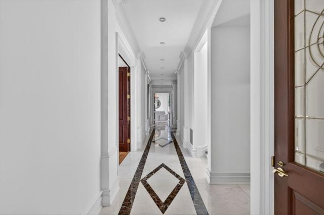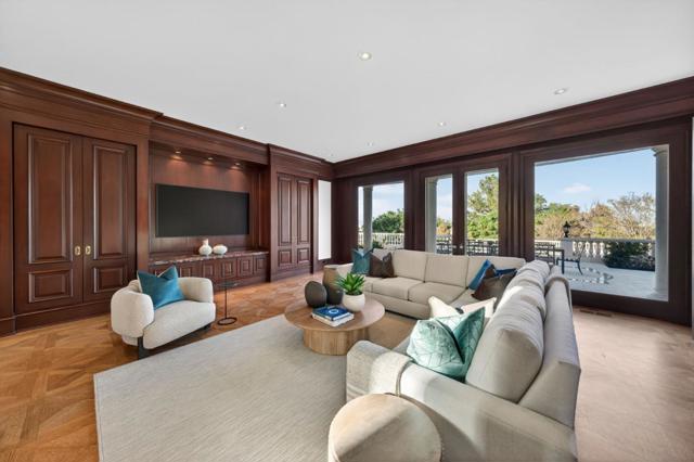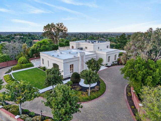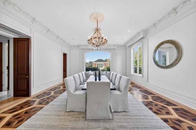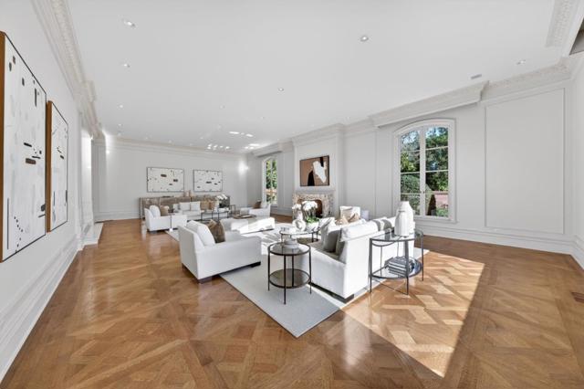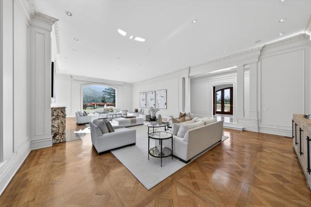 Crowning a private hilltop in prestigious Monte Sereno, this exceptional estate captures panoramic views of the valley, hillsides, and city. Beyond intricate double gates, a grand motor court introduces a striking stone façade where timeless architecture and elegant symmetry announce the grandeur within. Ornate crown molding accents soaring ceilings, while expansive windows frame breathtaking vistas - each room framing either sweeping views or the exquisitely landscaped grounds below. The living room centers on an oversized fireplace and hillside outlooks. The formal dining room features parquet floors, a statement chandelier, and oversized windows. A richly appointed office with its own fireplace offers a warm, sophisticated retreat. A chef's kitchen, family room, and two guest suites complete the main level. A private elevator connects all levels and opens to the top-floor primary suite with commanding views, dual walk-in closets, a spa-inspired stone bath, and private outdoor areas. The lower level offers a wine room, game room, and five-car garage. Outside, tiered grounds reveal a pool, expansive patios, a pool house, and a guest house - an extraordinary setting for entertaining at the highest level.