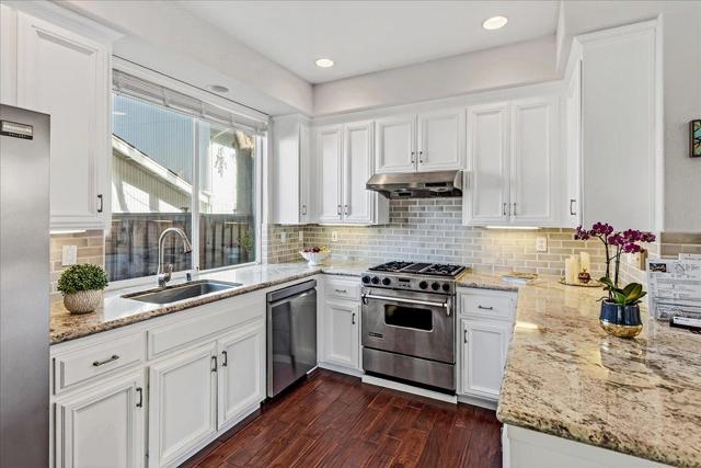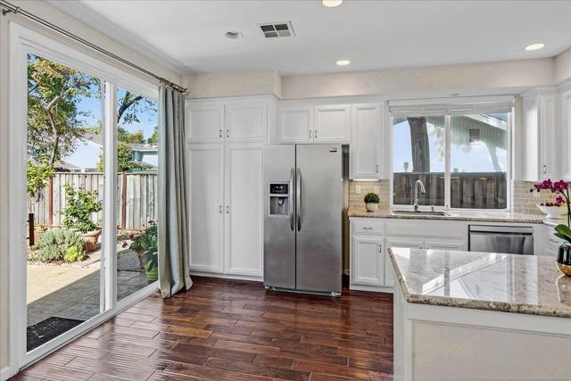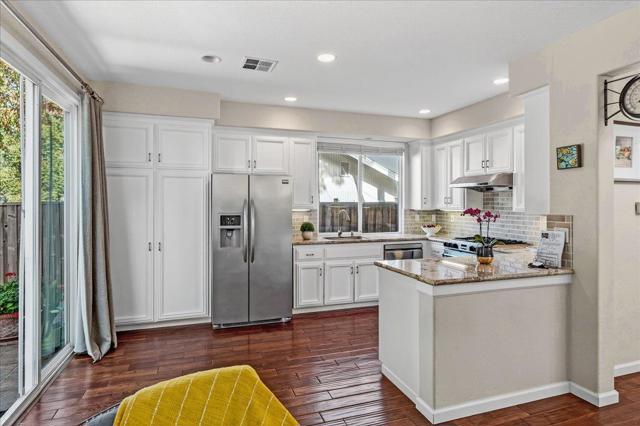 This lovely home full of natural light sits at the end of a quiet cul-de-sac in a neighborhood of well-maintained homes. With 1800 sq ft of living space featuring four bedrooms, including a primary bedroom with ensuite overlooking the backyard, and a dedicated laundry room. Downstairs features hardwood floors, an updated kitchen with granite countertops and an adjacent dining area complete with a cozy fireplace. Patio doors off the kitchen open up to the backyard with plenty of space to entertain! Two car attached garage. This house is move-in ready right in the heart of Silicon Valley. Just minutes from shopping and dining in downtown Saratoga, convenient access to Highways 9, 85, and 280, top-ranking schools including Monta Vista High School, and miles of popular, pet-friendly walking trails just down the street! Don't miss your chance to embrace the vibrant lifestyle this home offers!