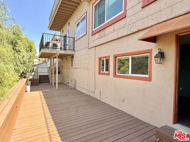 Welcome to 1915 1/2 Apex a beautifully updated Silver Lake residence offering the perfect blend of style and functionality. This lower level 2-bedroom, 3-bath home includes a bonus studio with separate entrance, ideal for a home office or creative space. The living area features high ceilings with exposed wood beams and opens to a private balcony. The kitchen offers ample storage, a built-in microwave, and dishwasher, plus a separate in-unit laundry area. The primary bedroom showcases stunning views of the Hollywood Sign and Silver Lake Reservoir, along with an en-suite bath and glass-enclosed rain shower. The second bedroom also includes its own full bathroom, with a third bath in the hallway. Enjoy a large private deck and a detached bonus room with its own entrance perfect for a live/work setup. Located in the desirable Silver Lake Hills, just minutes from the reservoir, shops, dining, and easy access to the 101, 2, and 5 freeways.