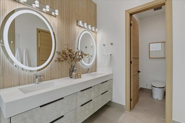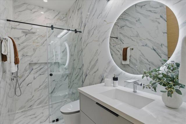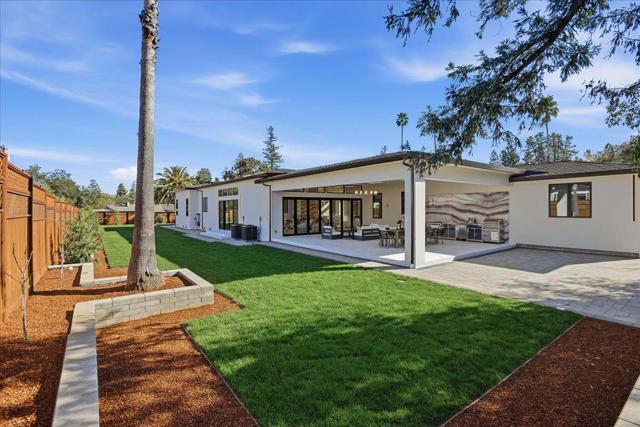 Experience this Move-In Ready 2026 Brand-New Construction, a Contemporary Modern Masterpiece Nestled on a Tranquil No-Through Private Road in Saratoga's Prestigious Golden Platinum on Over a Flat Half-Acre with Unrivaled Design. An Impressive Pivot Door Opens to a Grand Foyer w/ Cascading Chandeliers, Soaring 12-14 Ft. Ceilings & a Seamless Single-Level Floorplan w/ European Oak Flooring. The Culinary Kitchen Dazzles w/ Custom European Cabinetry, a Porcelanosa Island & Thermador Appliances. A DaVinci Floating-Island Fireplace Anchors the Great Room, Where Formal Living & Dining Spaces are Framed by Designer Accent Walls. The Layout Features 5 Ensuite Bedrooms, w/ Floor-to-Ceiling Porcelain Slabs, Including a Tranquil Primary Wing & an Attached ADU Integrated into the Layout. The 850+ SF California Room w/ Full Kitchen Merges to the Interior Via Glass Bifold Doors for Lavish Indoor-Outdoor Living. The Gronds Feature Low Maintenance Belgard Pavers *Lush Grass *Stones & a Serene Fountain. High-Tech Sustainability Includes Dual EV Chargers *Owned Solar w/ Battery Backups *Audio Zones *Security Cameras & Whole House Filtration System - A Silicon Valley Sanctuary Near the Saratoga Library, Farmers Market, High-Tech Hubs, Saratoga Village w/ Michelin Dining & Top-Rated Saratoga Schools.