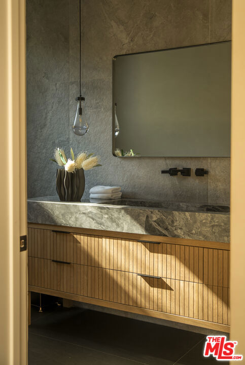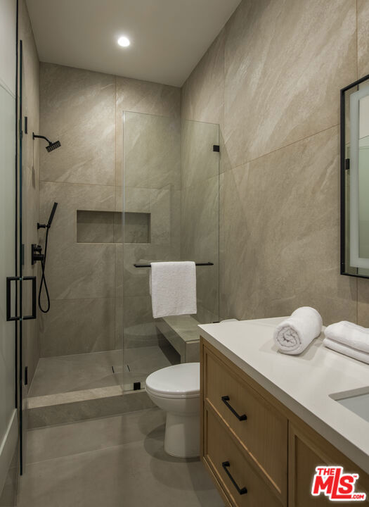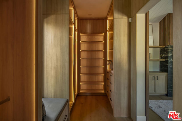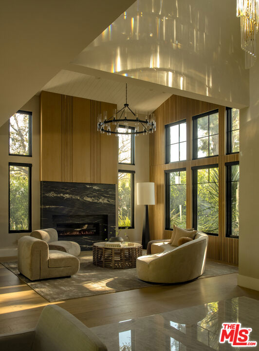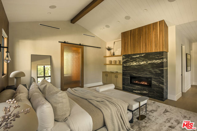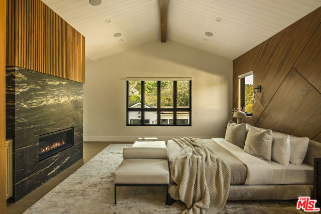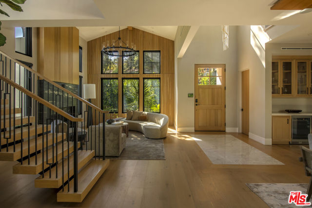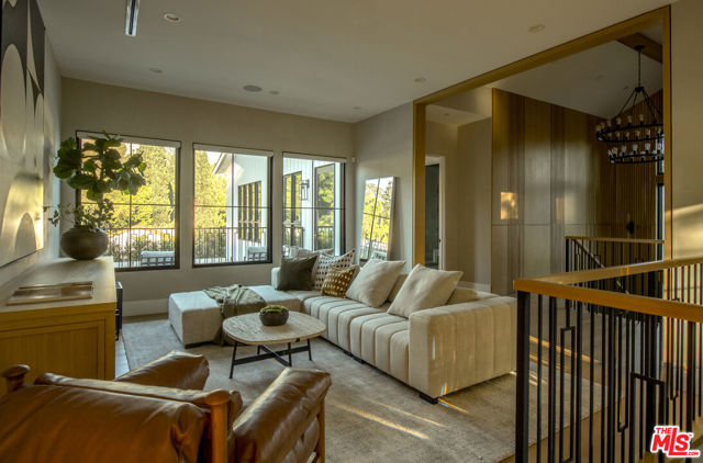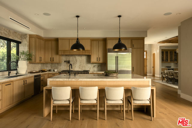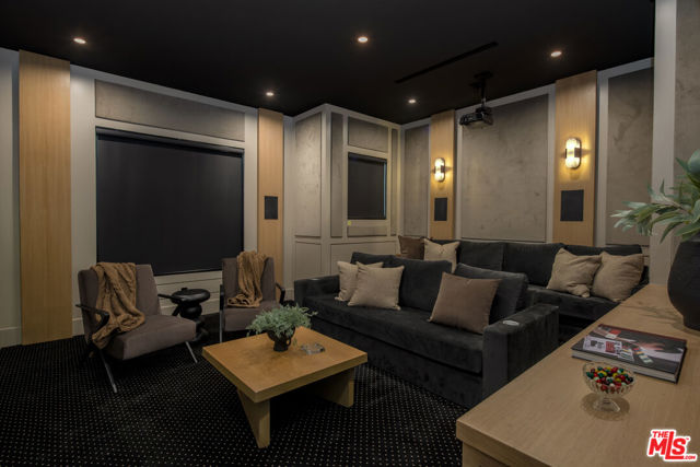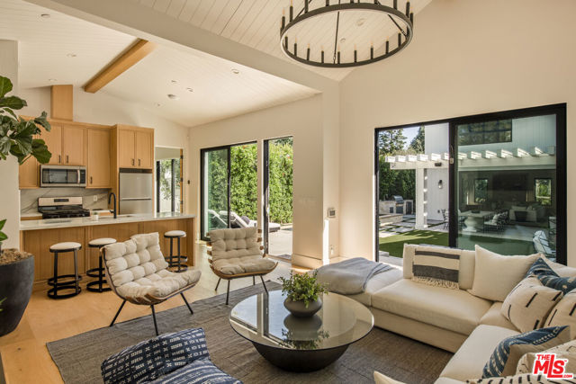 Completed in 2024, this gated compound welcomes you into a contemporary retreat in the heart of Westwood. Delineated by soaring high ceilings and the rich finishes of wood, stone, and metal, an immediate sense of warmth is felt upon arrival. The main living space offers a seamless connection from the kitchen and living room to the expansive backyard, where a sparkling saltwater pool, fire pit, and built-in barbecue area invite opportunities to entertain guests or relax in privacy. Back inside, the chef's kitchen showcases white oak cabinetry, Wolf and Sub-Zero appliances, and a Taj Mahal stone island. Off the kitchen is the spacious living room, centered around a striking leathered granite fireplace with generous windows on either side. Also on this floor sits the formal dining area, with additional egress to the backyard, a guest bedroom or office, and a designated screening room. Upstairs, there is a family room or flex space just off the landing, leading to the additional guest bedrooms, each with an en-suite bath, and a serene primary wing overlooking the backyard. The primary suite continues the calming, organic motif of the first level, with walnut wood accents, a large balcony, and a luxurious bathroom with a generously-sized shower, soaking tub, and double vanities. A spacious ADU mirrors the detailed level of craftsmanship of the main residence, with an additional living room, kitchen, and bedroom plus en-suite bath. The entire home is enhanced by a Control4 smart home system throughout. It is ideally located near UCLA and Westwood Village, with proximity to the 405 freeway.