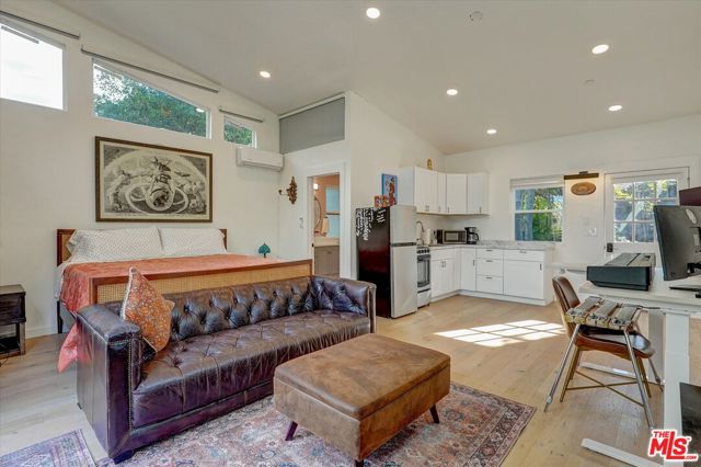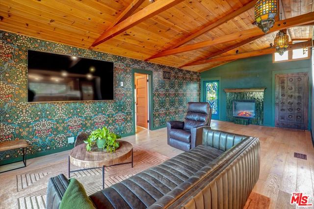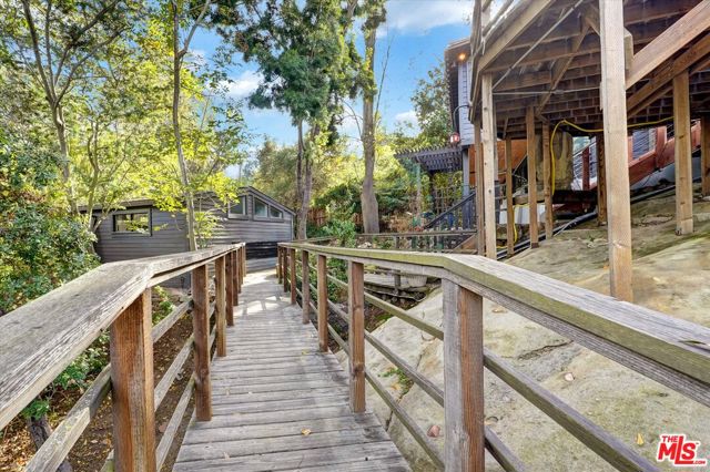 A Nature Lover's Dream!Nestled in the heart of Topanga and tucked away behind a private gate, this serene hillside haven captures the timeless magic of Topanga living, where nature and modern comfort exist in perfect harmony. From the moment you arrive, the landscape invites you in, offering peaceful seclusion and a profound sense of calm. Renovated in 2022 with no expense spared, the property features a new roof, upgraded septic system, hardwired security camera system, and hardwired fiber-optic WiFi. A two-car garage with workshop space, along with ample gated guest parking. The main residence currently offers two bedrooms and one bath, with the flexibility to easily convert back to a three-bedroom layout. Original architectural details blend seamlessly with expansive picture windows framing breathtaking views of the Santa Monica Mountains. The renovated bathroom offers a spa-like escape with a soaking tub and glass-walled shower. The newly updated open kitchen honors the home's vintage character with a copper farmhouse sink and terrazzo flooring, complemented by white Silestone quartz countertops and skylights that flood the space with natural light. Stained glass windows and one-of-a-kind vintage lighting fixtures enhance the home's eclectic, cozy ambiance. Cross a scenic bridge to the newly built guest house, featuring high ceilings, motorized blinds, a full bath, and a kitchenette ideal for guests, remote work, or creative pursuits. A separate flexible space ideal for an art studio, yoga room, or meditation retreat. The magical, sprawling grounds unfold into a private nature sanctuary. Meandering pathways wind through towering trees, past majestic boulders, over charming bridges, and toward hidden lookout points with awe-inspiring views. Multiple patios and decks provide perfect spaces to relax or entertain. By night, rustling leaves and distant bird calls create an enchanting, star-lit atmosphere. More than just a home, this is a soulful retreat, an invitation to escape the city and embrace a life of peace, beauty, privacy, and timeless charm. This rare offering truly has it all: location, views, history, and heart.