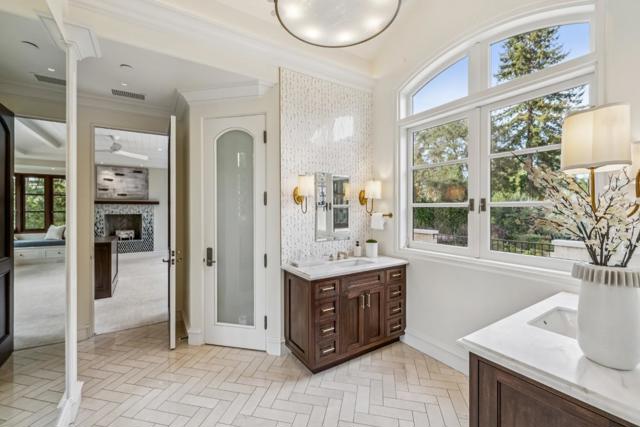 Privately set on 1.06 acres in the Menlo Circus Club area, this magnificent estate was built by renowned builder Pacific Peninsula Group. Spanning three levels with elevator, the rooms are all grand with refined formal rooms, a dramatic two-story library, expansive family room and remodeled kitchen, recreation room, theatre, music room, fitness center with sauna and steam, plus an exceptional wine cellar. The main home has 6 bedroom suites 5 upstairs and 1 on the main level along with a spa bath, 3 half-baths, and a separate 1-bedroom, 1-bath guest house. Resort-inspired grounds unfold with a pool, spa, and barbecue kitchen, while extraordinary gardens provide year-round color, meandering paths, and secluded areas for relaxation. Eight vegetable beds, a large greenhouse, chicken coop, and picnic area support a true farm-to-table lifestyle. Located in one of Athertons most exclusive neighborhoods, this property is moments from Stanford University, top public and private schools, Sand Hill Road venture capital firms, leading Silicon Valley tech campuses, and approximately 25 minutes from San Francisco and San Jose International Airports.