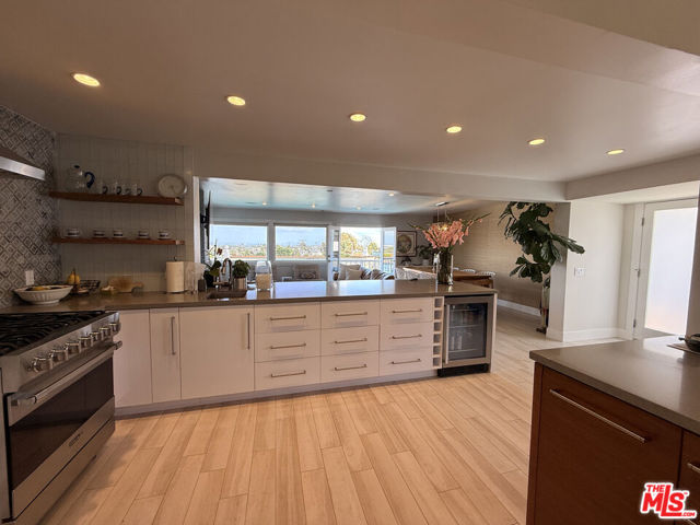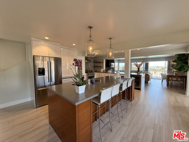 Ideal rental in prestigious MB Hill section. Great opportunity near downtown MB, Gelsons, Larsson Park, and easy access south into Hermosa Beach. This four bedroom remodeled home has a spacious open floor plan, with a large great room and full size dining room. It is available partially furnished. The gourmet kitchen has a two large islands, wine fridge, Viking stove and a breakfast area, as this wide open space is the hub of the house. There are two bedrooms and one bath upstairs and two bedrooms down, one with a private bath and a separate powder room. Italian porcelain tiles throughout. Steam shower in the primary bath. Walk in laundry room on main level. Perched up to command views over the pool and to downtown LA, the home gets great light with 180 degrees of sun, as it faces both East and West. Looking to start June 7th approximately.